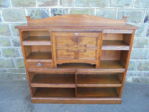 Antique Oak Secretaire Open Bookcase / Bookshelves c.1880