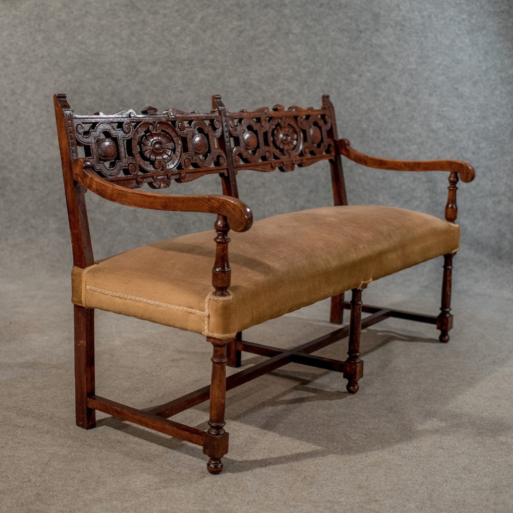 Antique Oak Settee Sofa Upholstered Bench 2 or 3 Seater Edwardian English c.1910 (1 of 1)