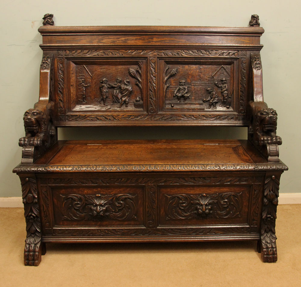 Antique Oak Settle / Hall Seat / Monks Bench (1 of 1)