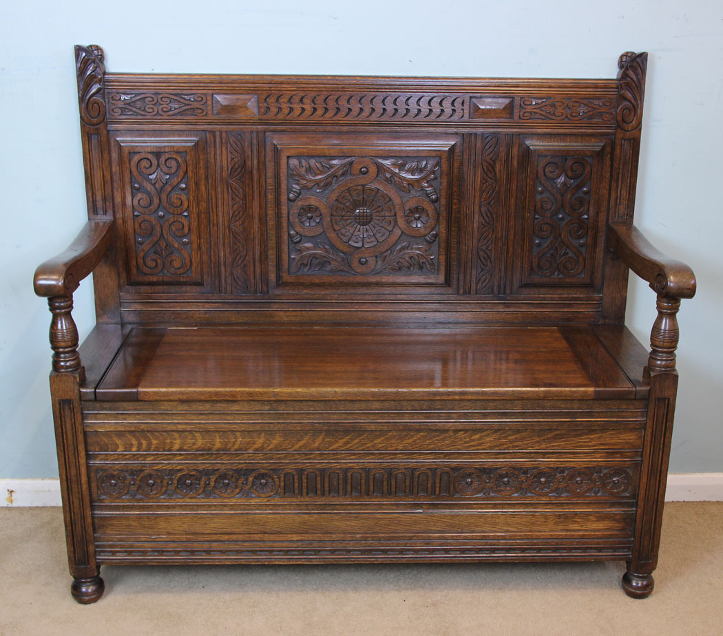 Antique Oak Settle / Monks Bench / Hall Seat c.1910