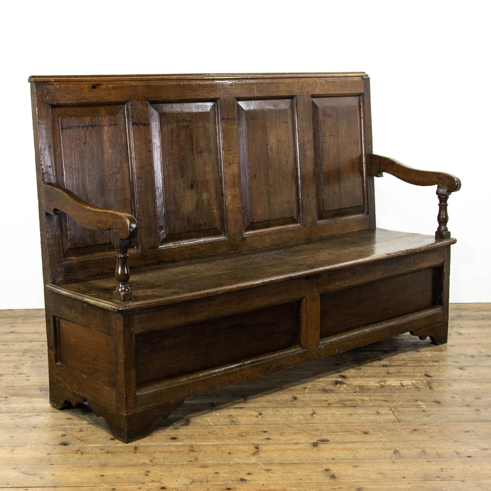 Antique Oak Settle with Panelled Back (1 of 8)