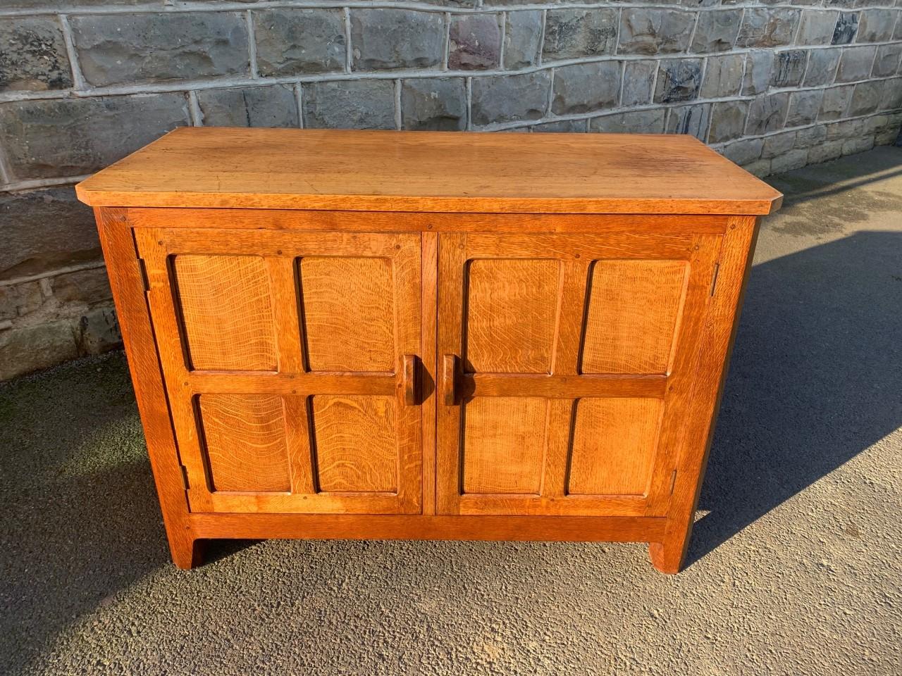 Antique Oak Side Cabinet Manner of Robert "Mouseman" Thompson