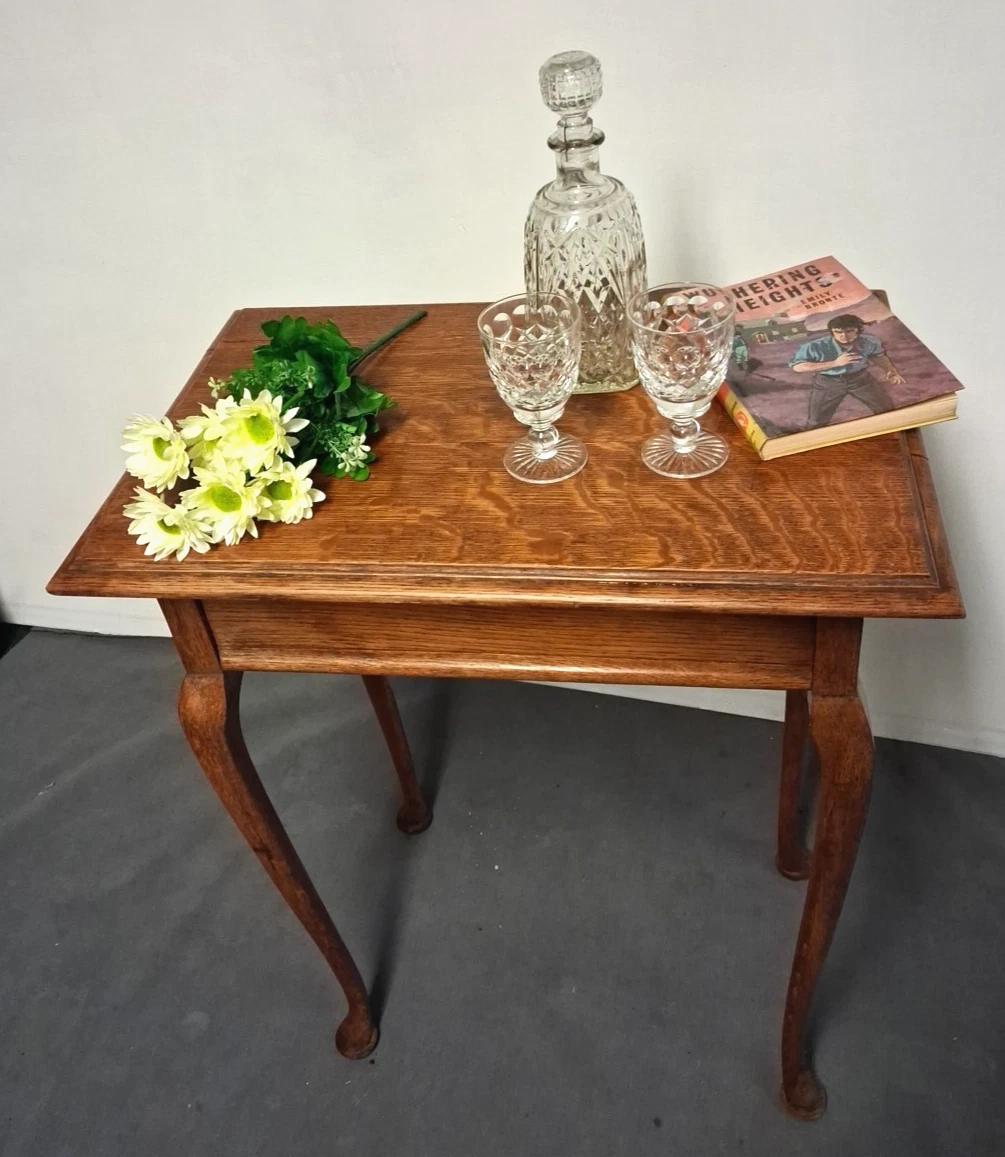 Fedw Hir Antiques has clarified that the Antique Oak Side Table Stands Proud And Tall On Queen Ann Style Legs (LA563277) is genuinely of the period declared with the date/period of manufacture being circa 1925