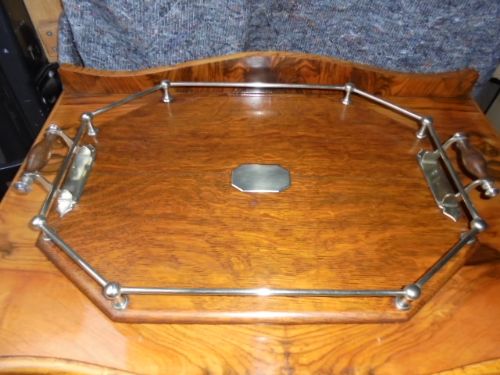 Antique Oak & Silver Plated Gallery Tray / Drinks Tray c.1900