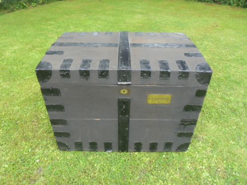 Antique Oak & Steel Bound Military Campaign Trunk c.1880