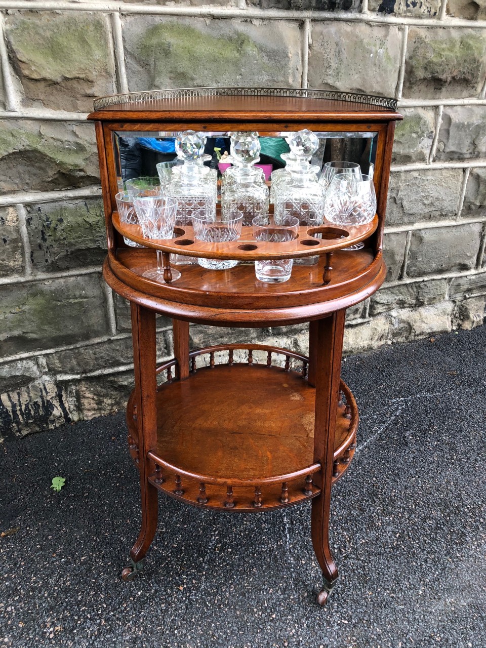 Antique Oak Tantalus Drinks Table c.1900
