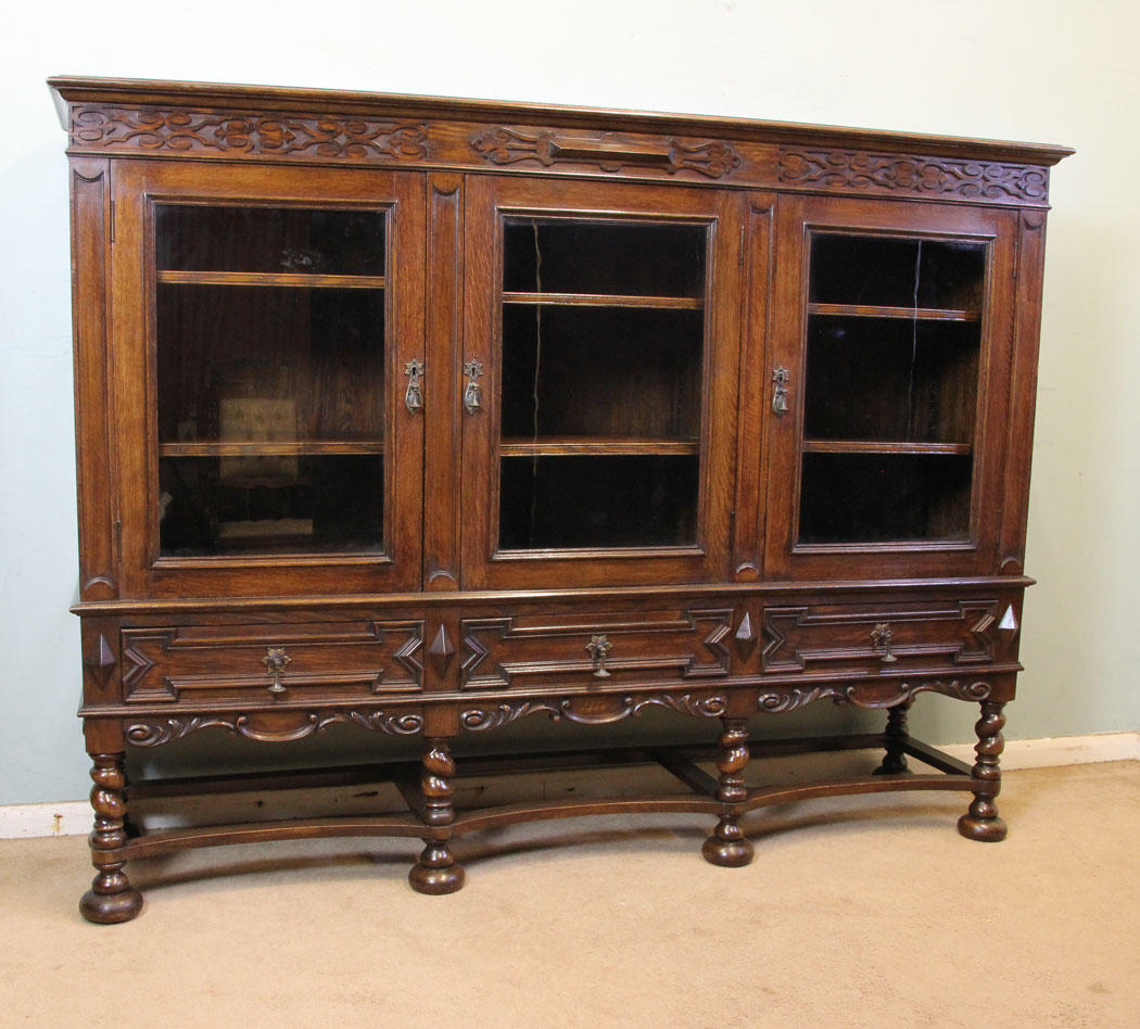 Antique Oak Three Door Bookcase Display Cabinet C.1910