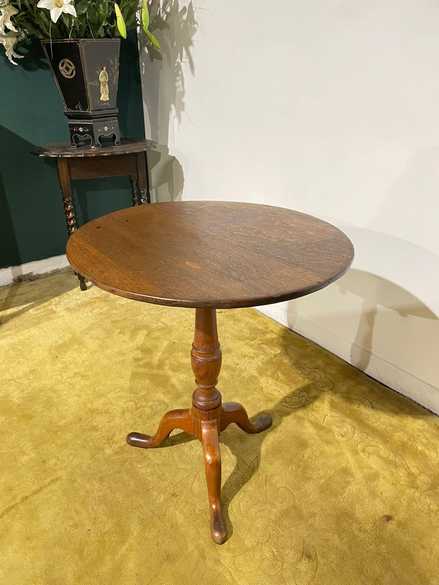 Antique Oak Tilt Top Side Table Resting On A Tripod Base (1 of 16)