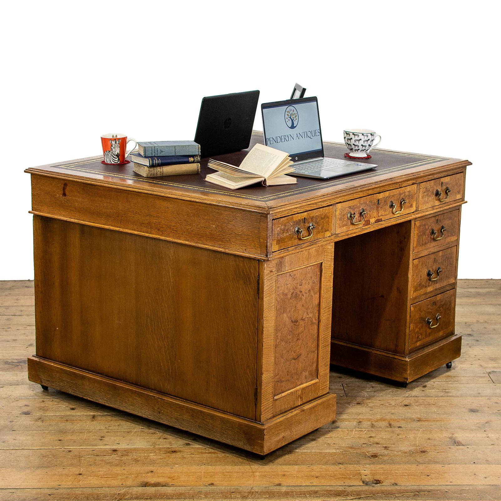 Antique Oak Twin Pedestal Partners Desk (1 of 17)