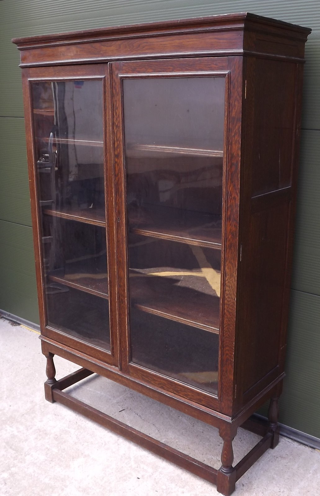 Antique Oak Two-Door Glazed Bookcase Cabinet
