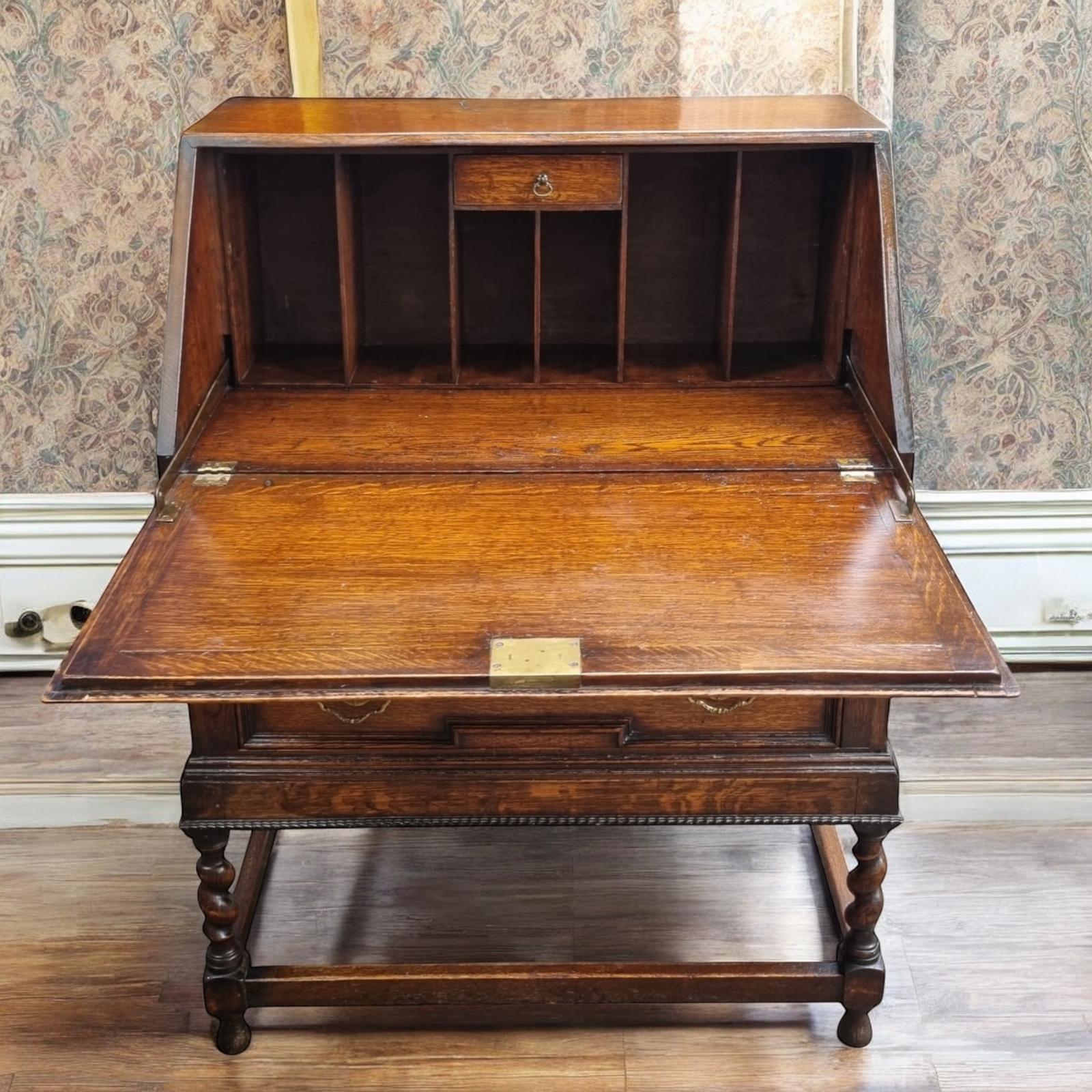 Antique Oak Writing Bureau Chest / Barley Twist Legs c.1910