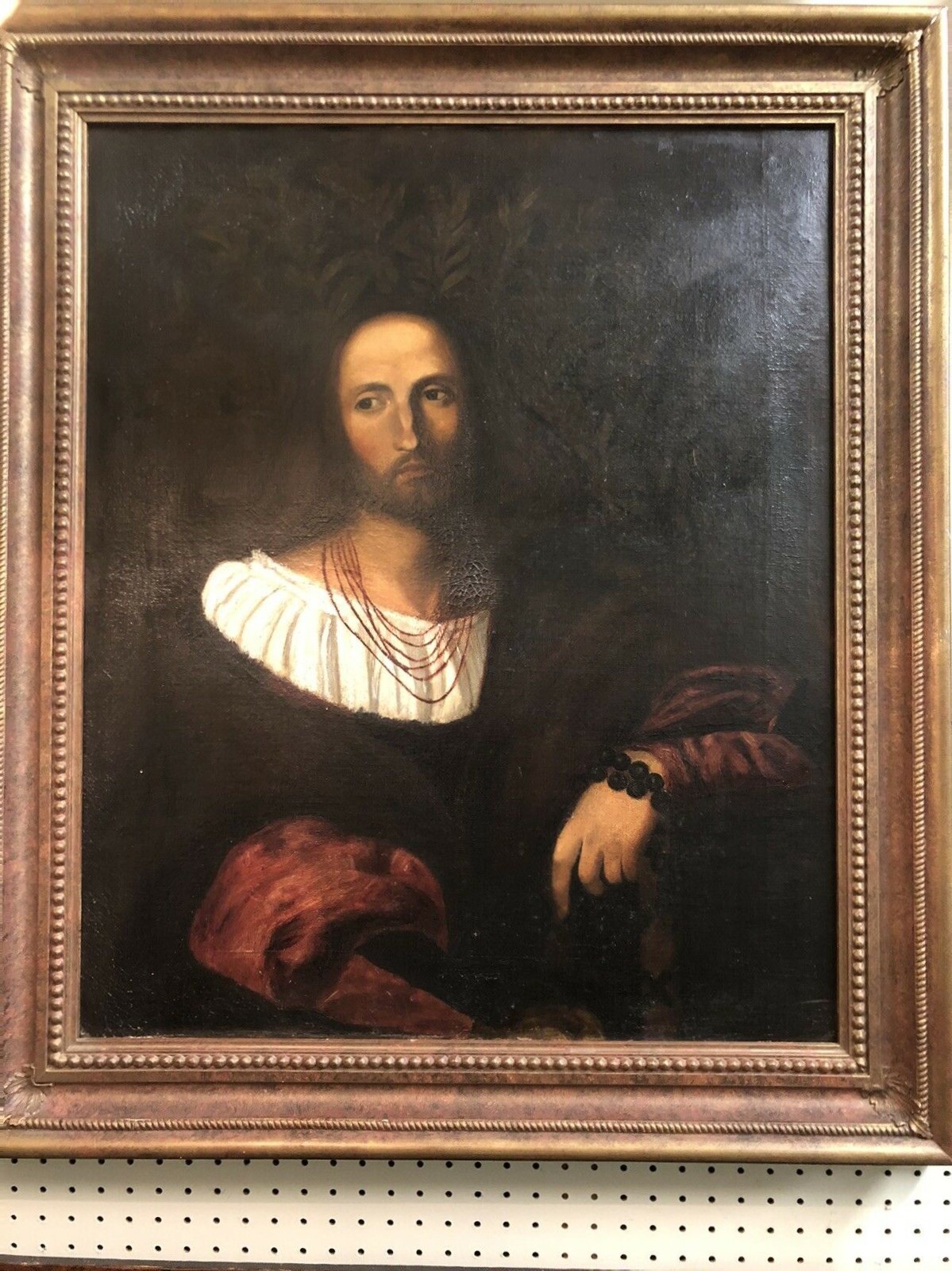 Antique Oil On Canvas, After Palma Vecchio, Portrait of a Poet