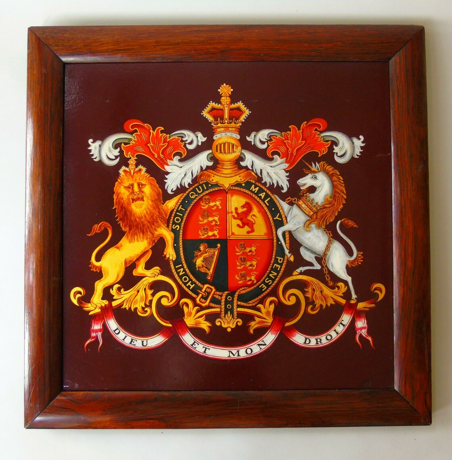 Antique Oil Painting British Royal Coat of Arms c.1870 (1 of 1)