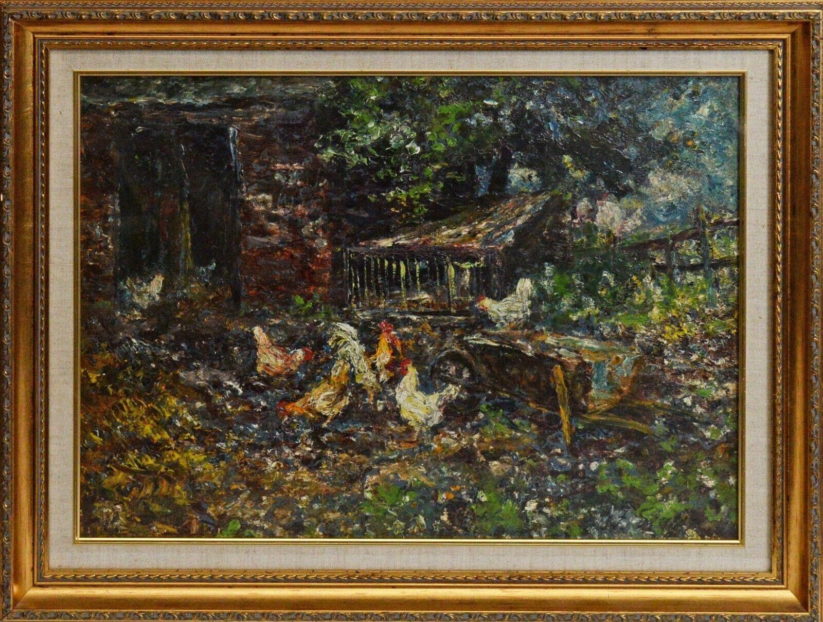 Antique Oil Painting JF Slater Chickens (1 of 5)