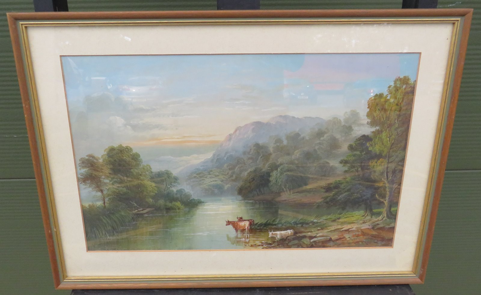 Antique Oil Painting of a Lanscape Scene, Featuring Cows, Signed J. Burrows