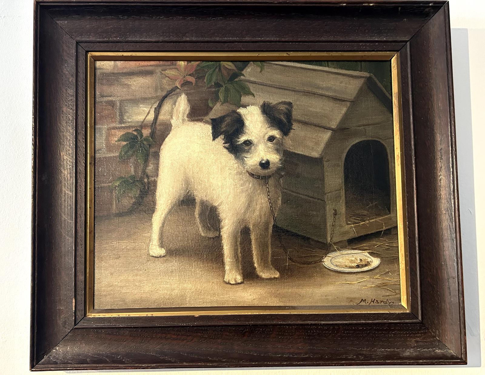 Antique Oil Painting of a Little White Dog