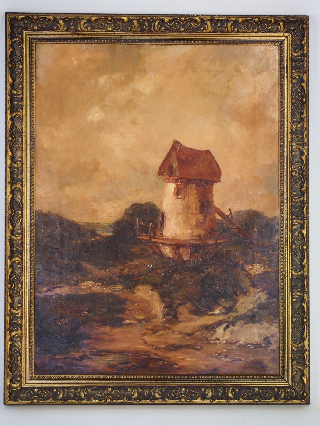 Antique Oil Painting of 'a Remote Windmill' c.1900 (1 of 1)