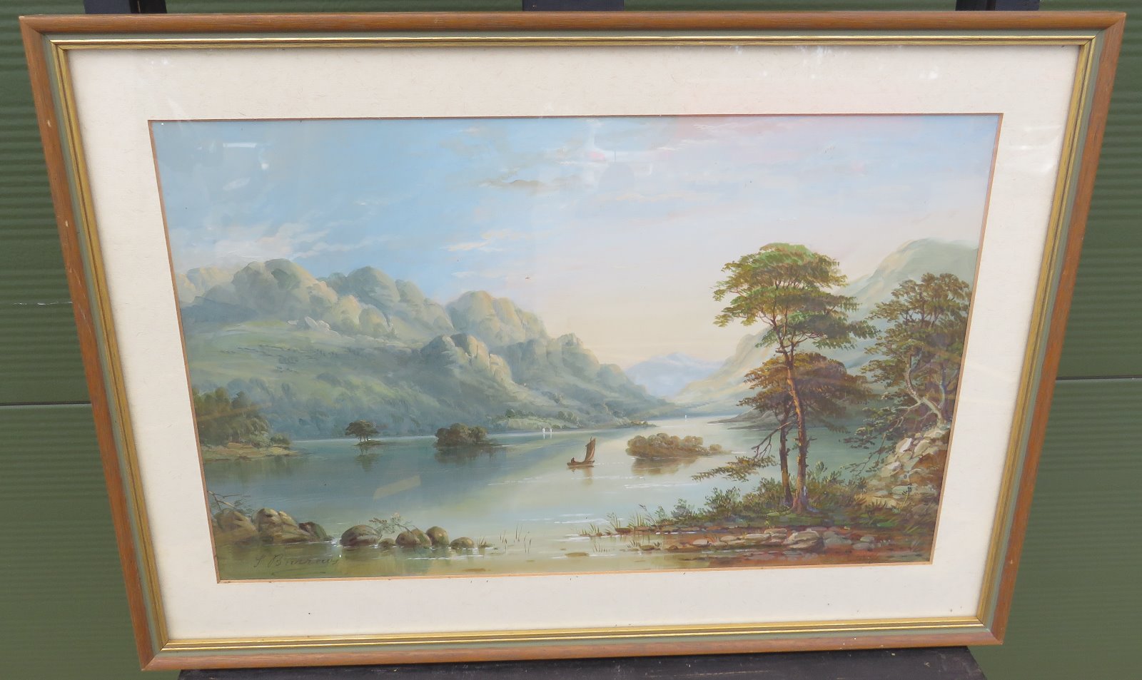 Antique Oil Painting of a River Scene, Featuring Boat, Signed J. Burrows