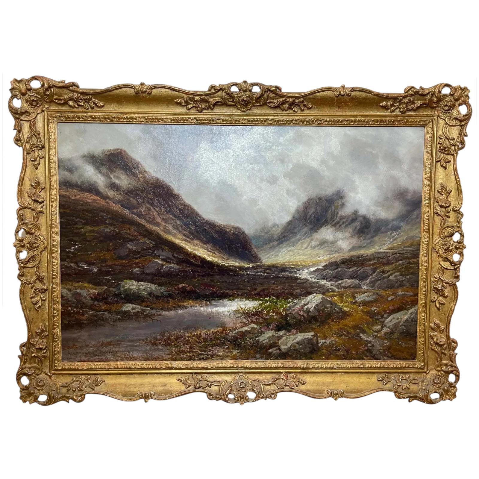 Antique Oil Painting Scottish Highlands Glencoe By Edwin Alfred Pettitt