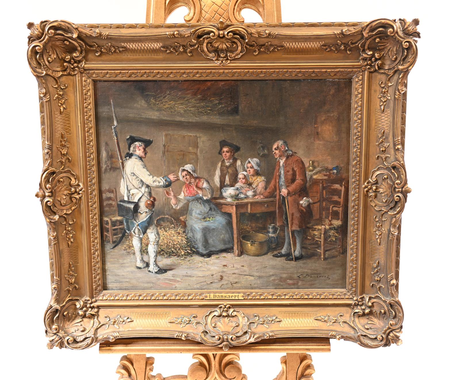 Antique Oil Painting Signed Dansaert Soldier Homecoming Portrait