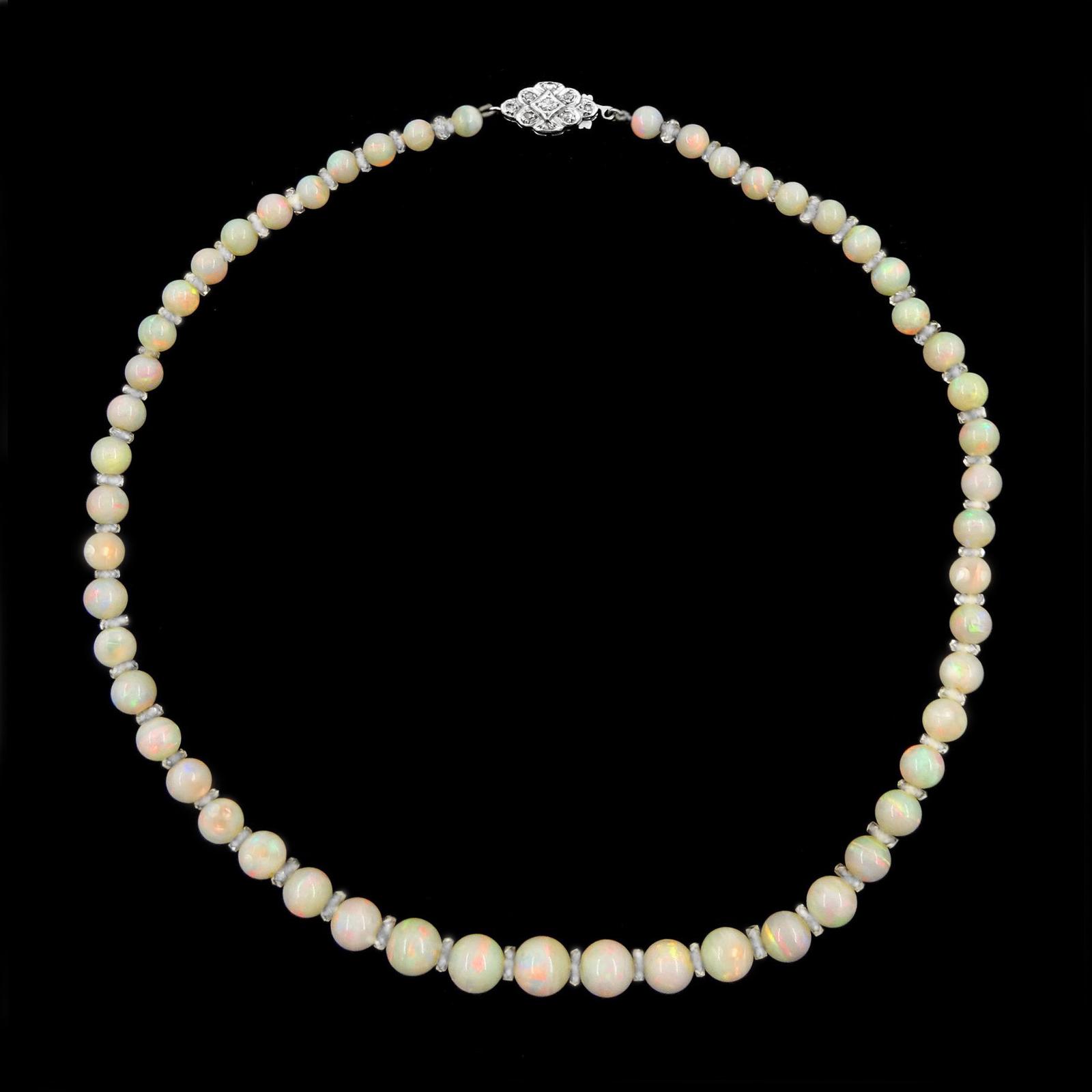 Antique Opal Bead and Rock Crystal Necklace with Diamond Clasp Edwardian ca 1910