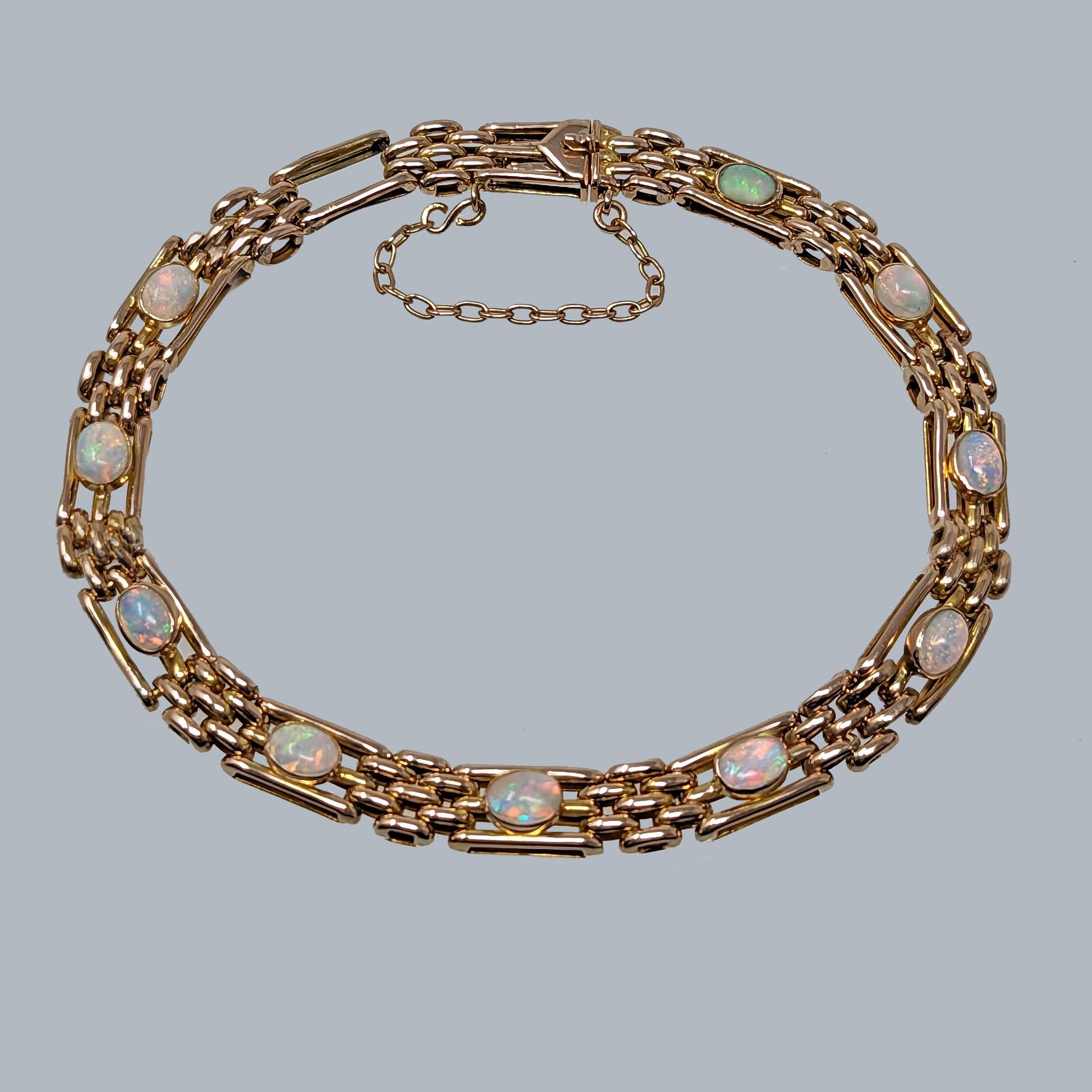 Antique Opal Bracelet 9ct Gold Edwardian Gate-link Vintage Bracelet Circa 1910