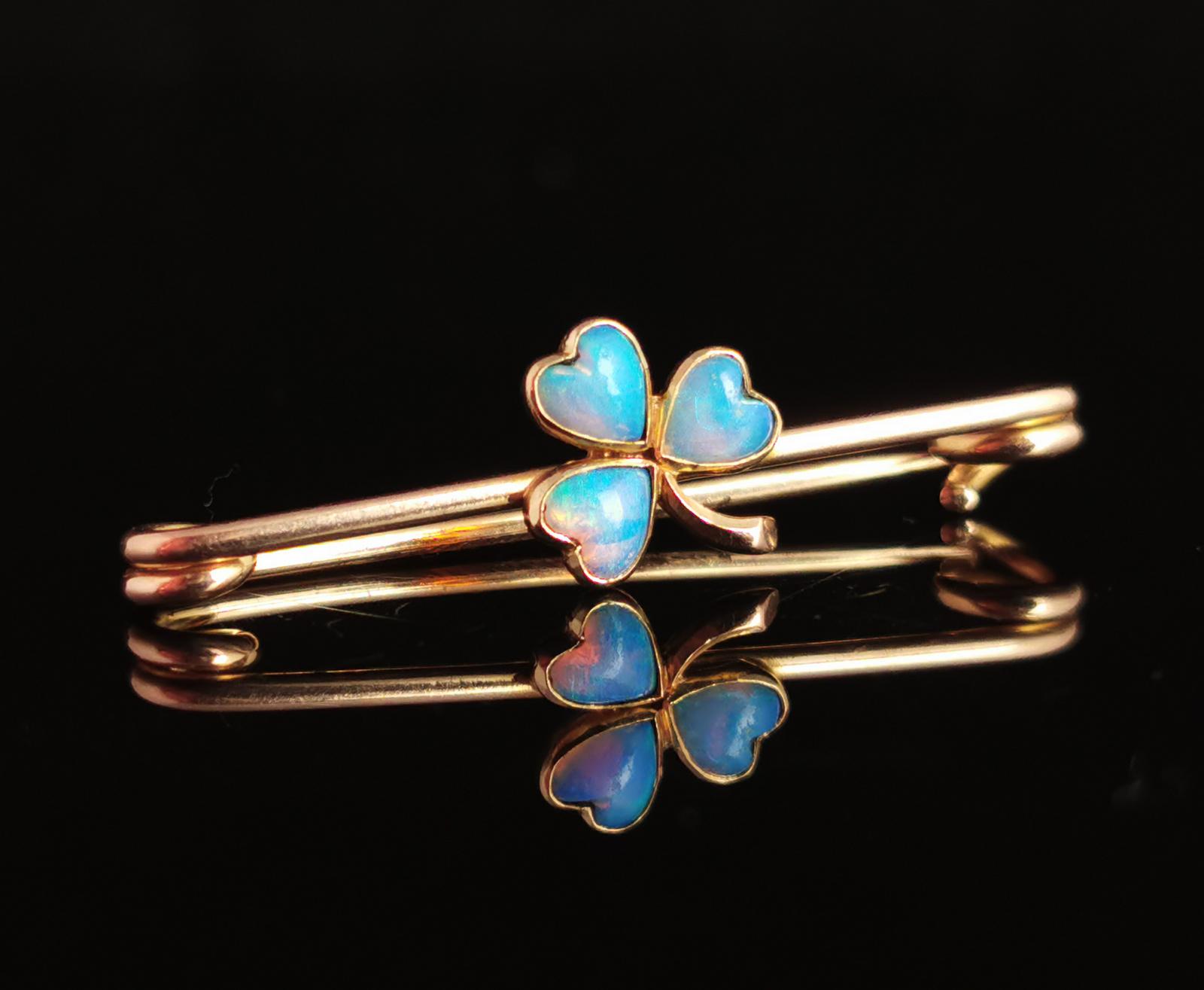 Antique Opal Clover Brooch, Pin, 15ct Gold