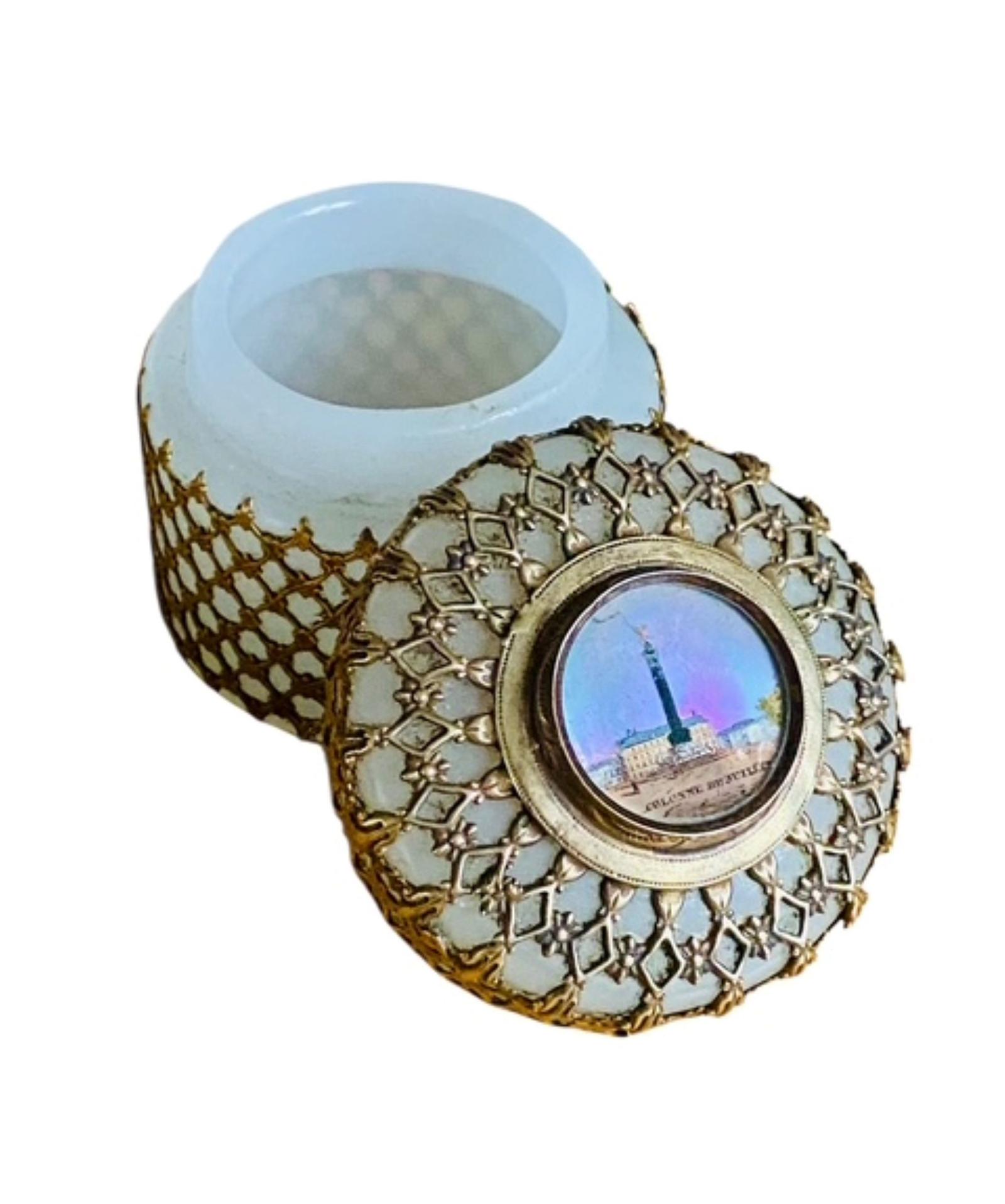 Antique Perfume Scent Vinaigrette Bottle White Opaline & Gilt with Silver Gilt Lid Circa 1880