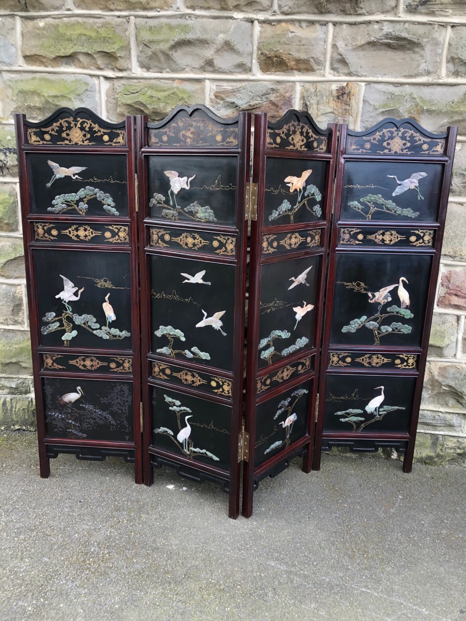 Antique Oriental 4 Fold Lacquered Dressing Screen