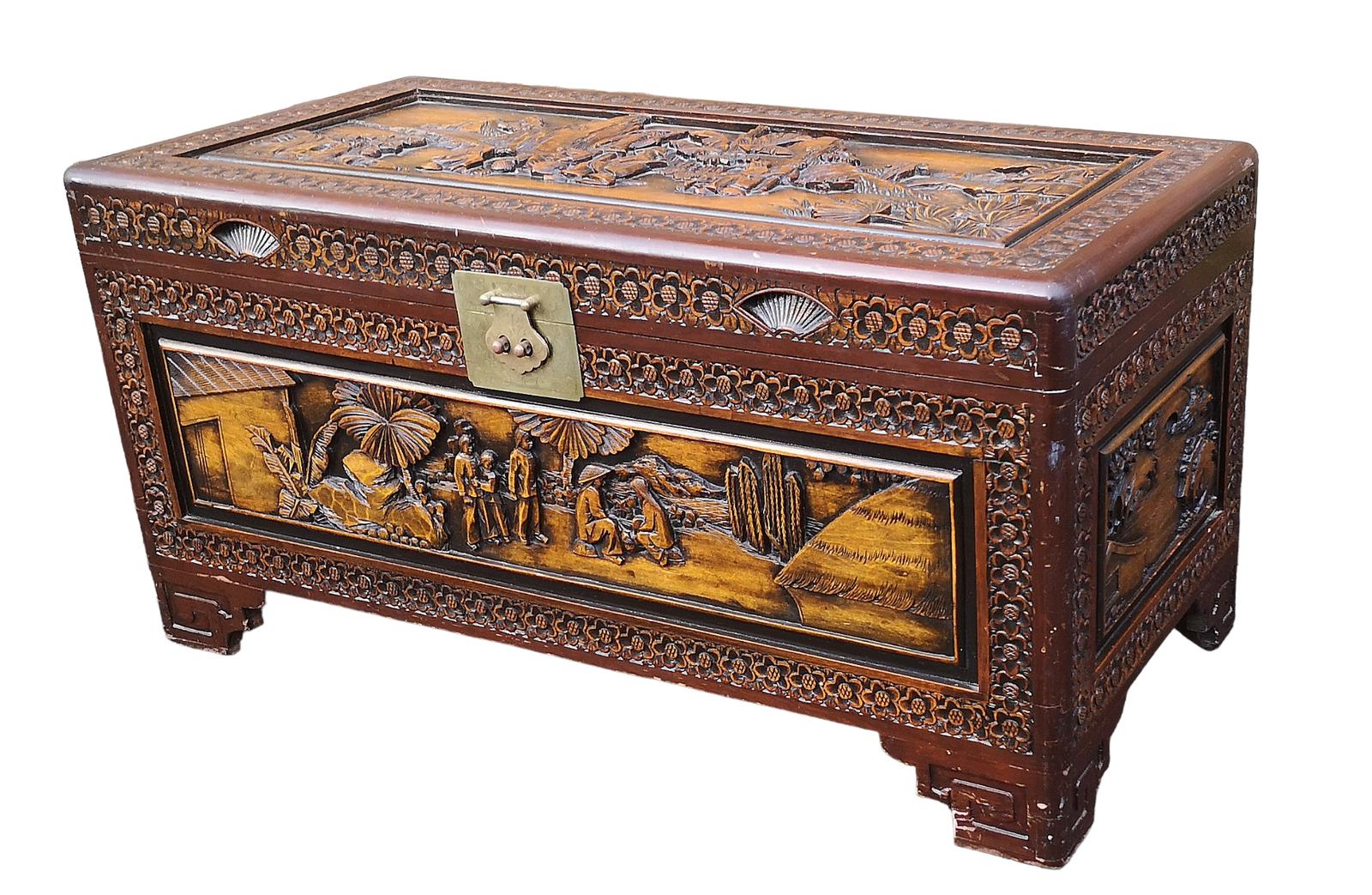 Antique Oriental Carved Camphor Trunk / Box (1 of 16)