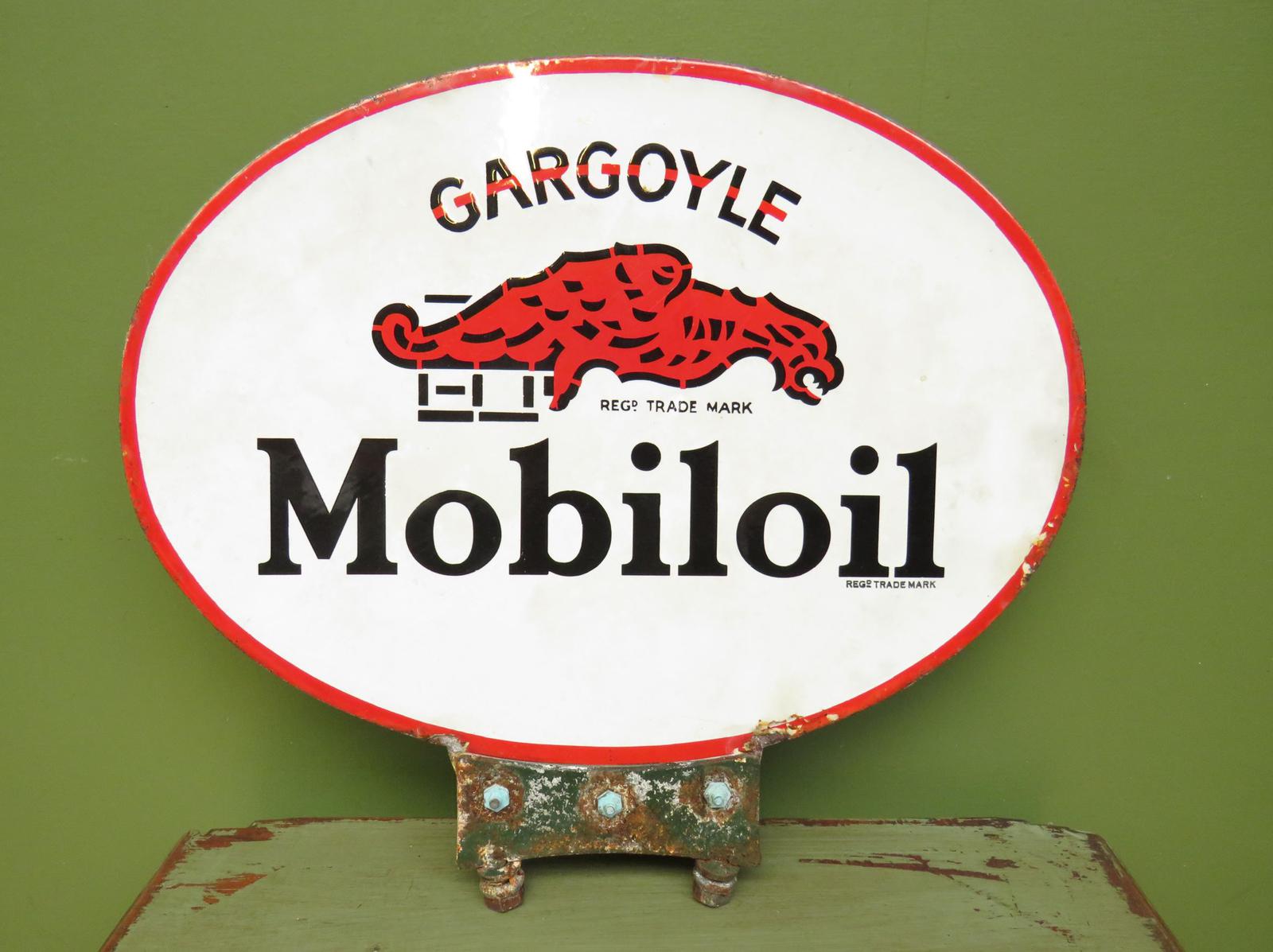 Antique Original Enamel American Mobiloil Garage Pump Sign With Bracket
