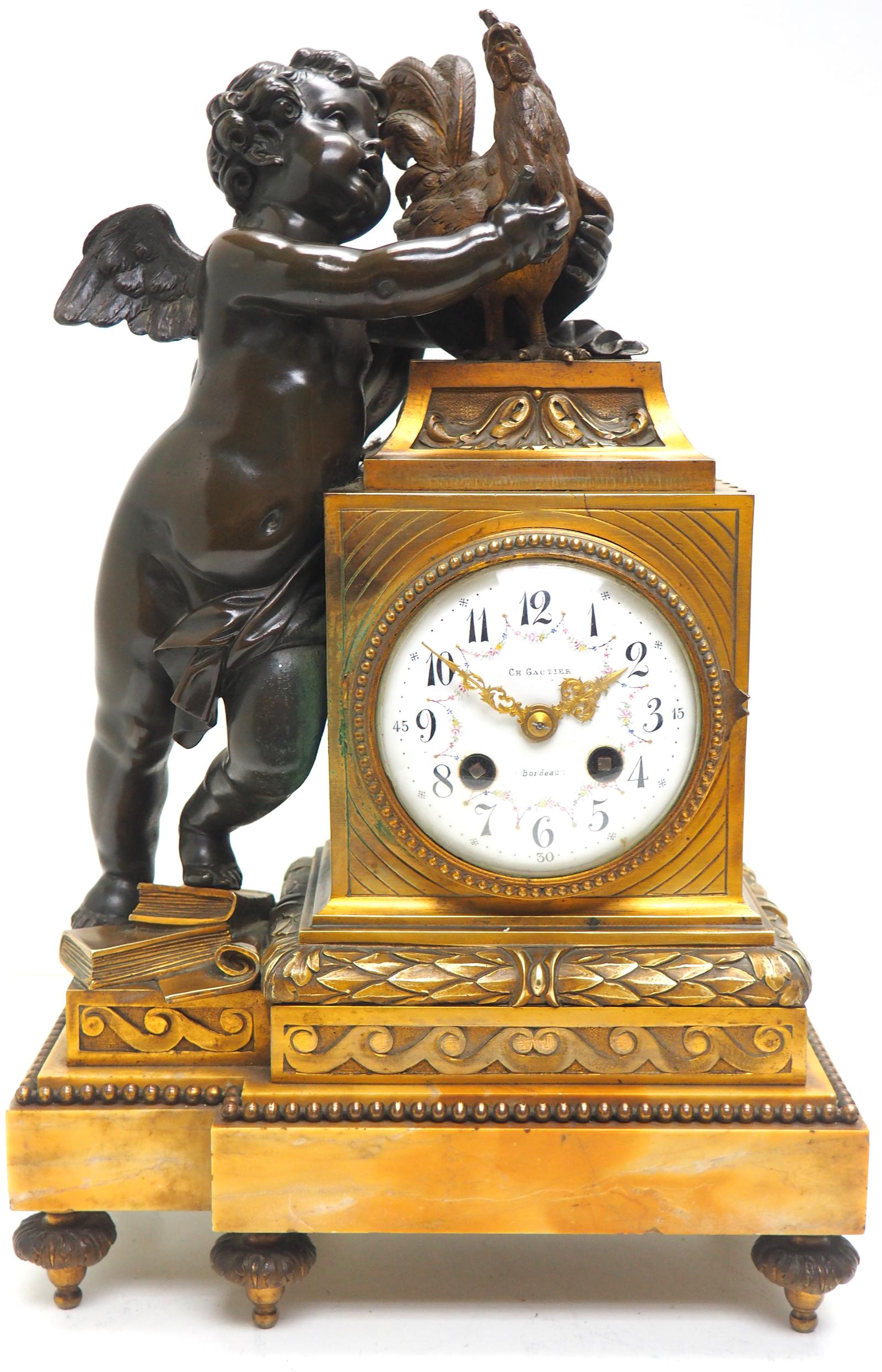 Antique Ormolu Bronze Mantel Clock Cherub & Roaster Solid Bronze Striking 8-day Mantle Clock by Ch Gautier (1 of 16)