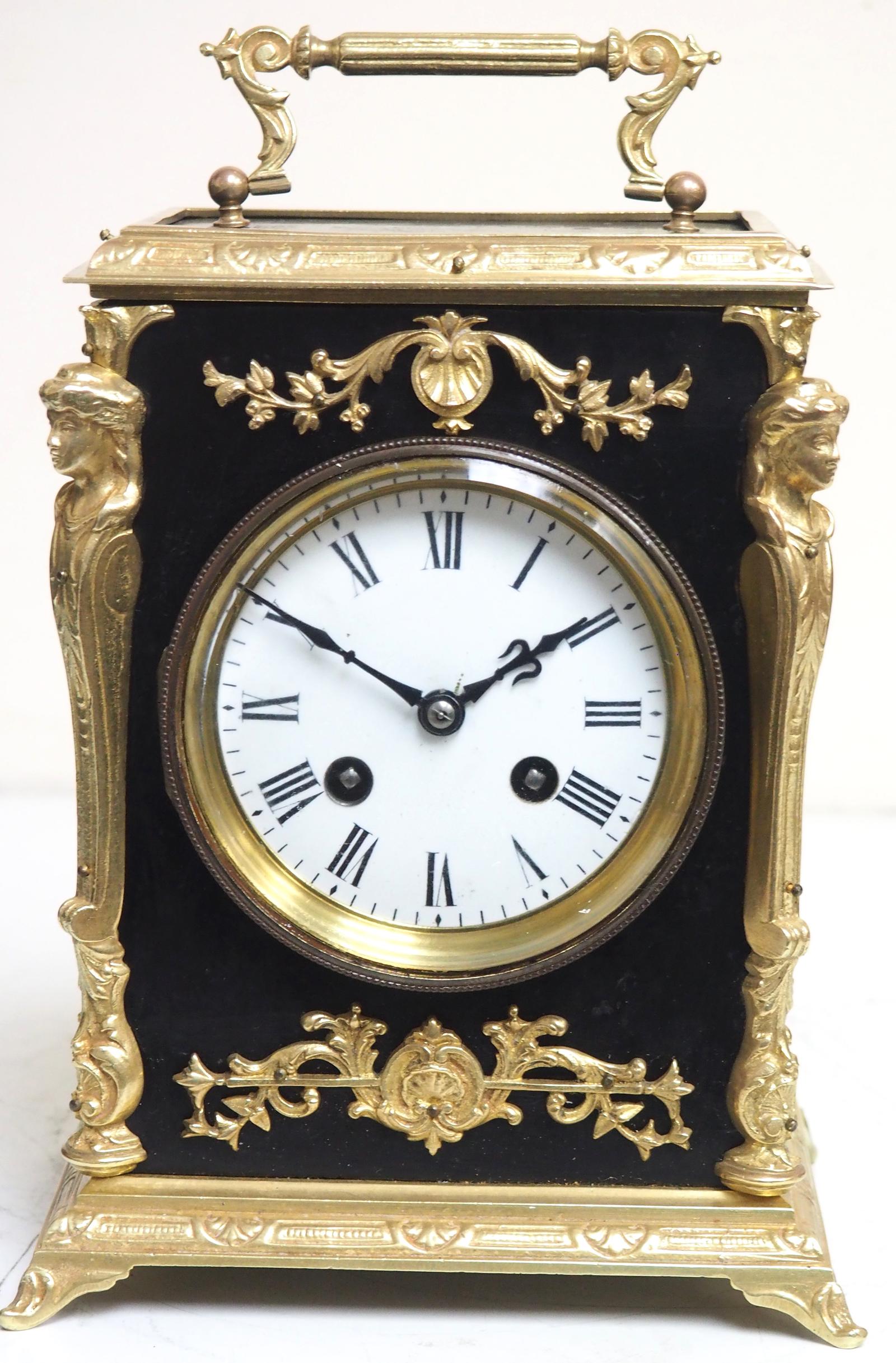 Antique Ormolu & Ebony Carriage Clock – French Striking Mantel Clock (1 of 11)