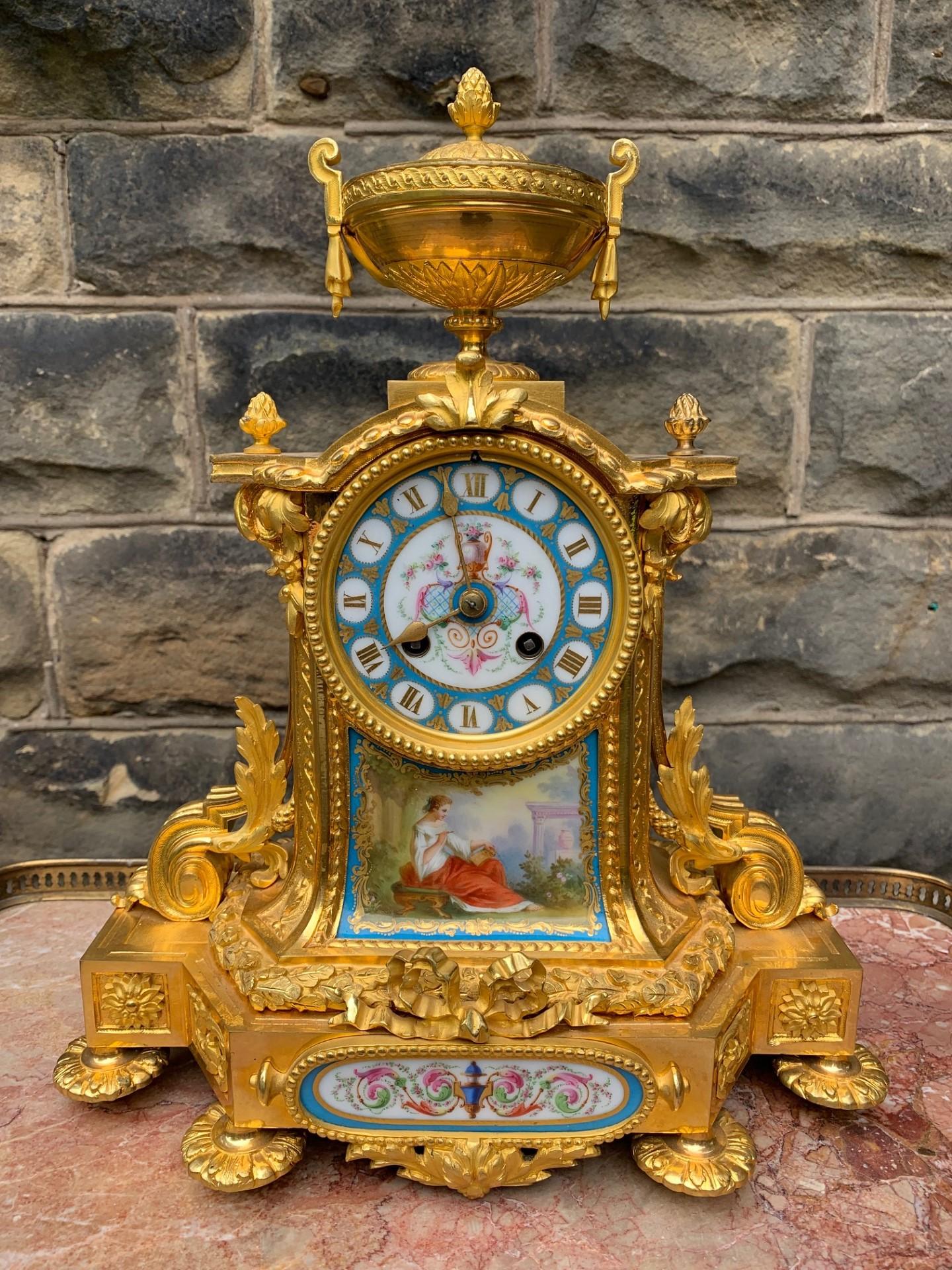 Antique Ormolu & Porcelain Mantle Clock