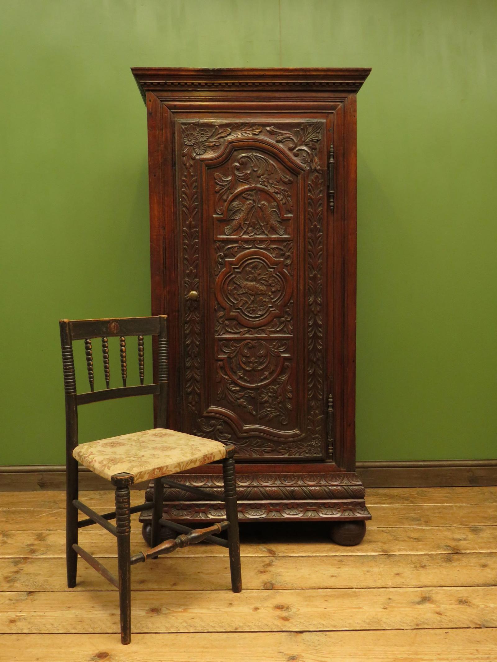 Antique Ornately Carved French Oak Cupboard with Birds & Foliage