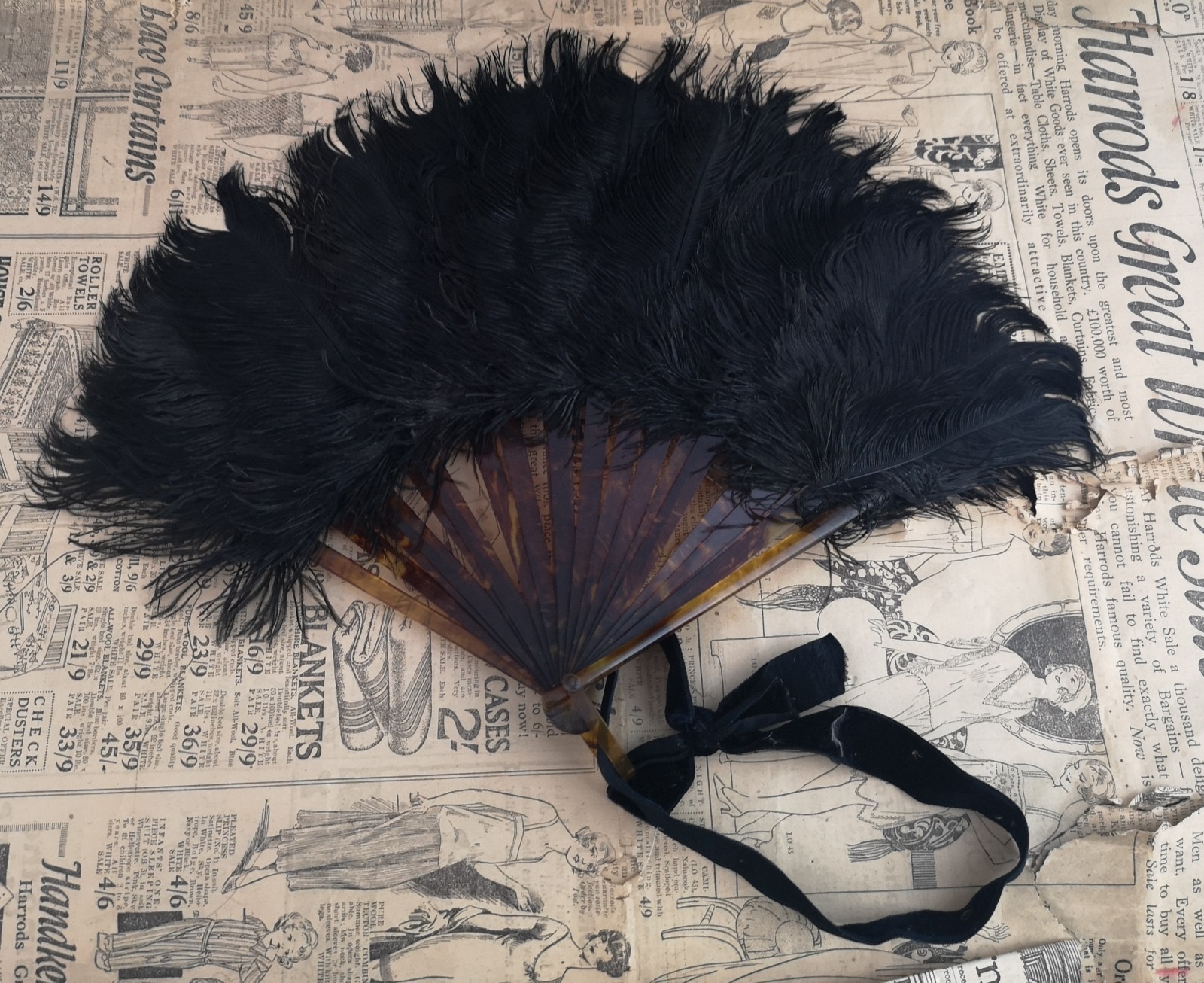 Antique Ostrich Feather Fan, Faux Tortoiseshell