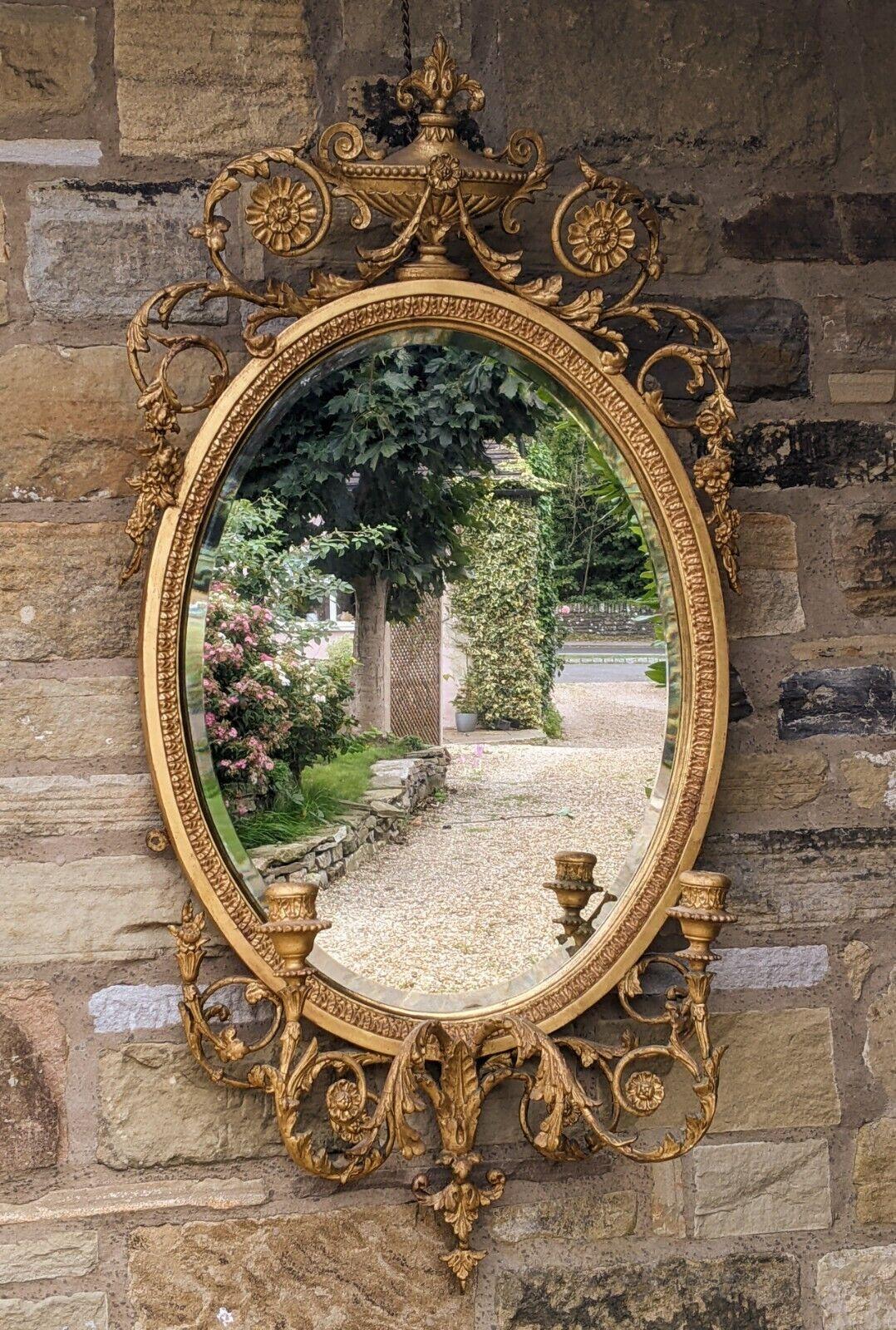 Antique Oval Gilt Mirror with Girandole