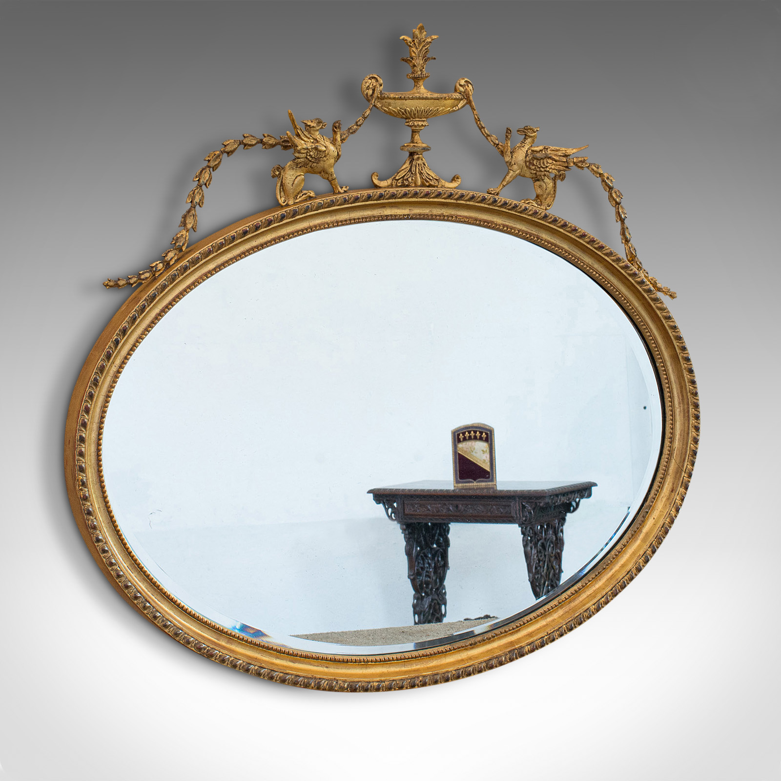 Antique Oval Mirror, English, Gilt Gesso, Glass, Adam Style, Victorian c.1890
