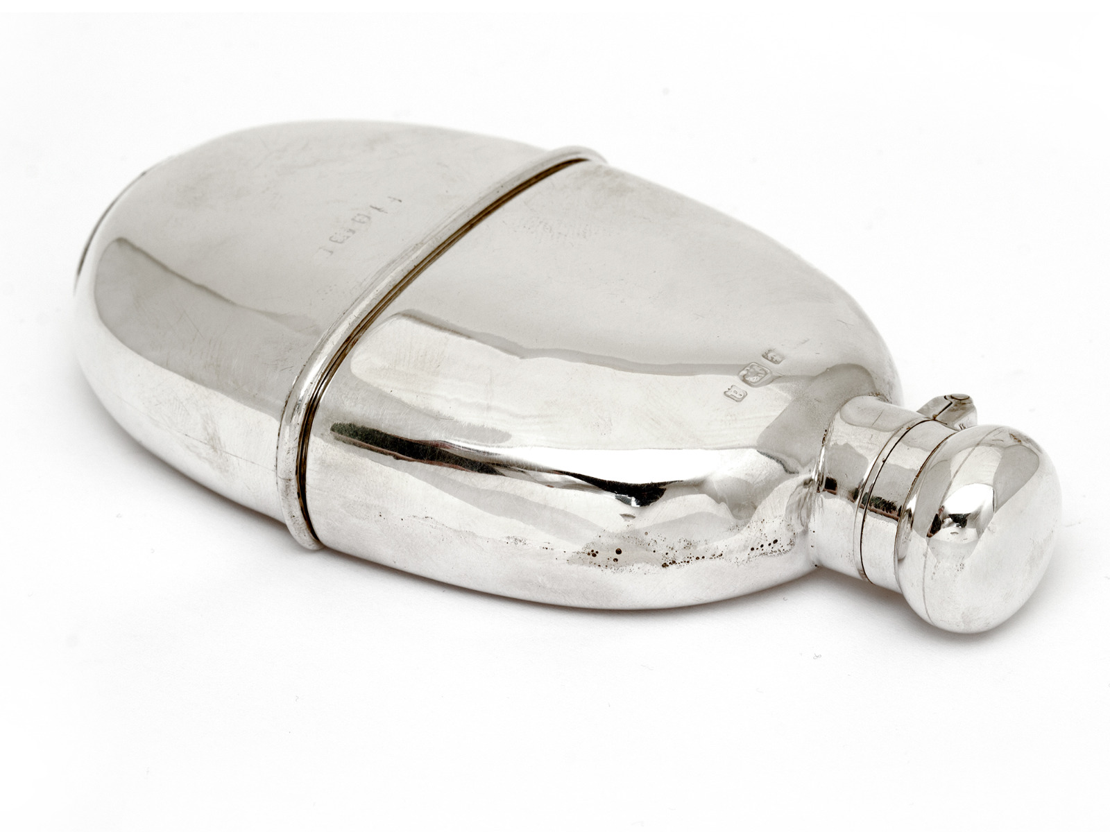 Antique Oval Plain Silver Flask with a Detachable Cup