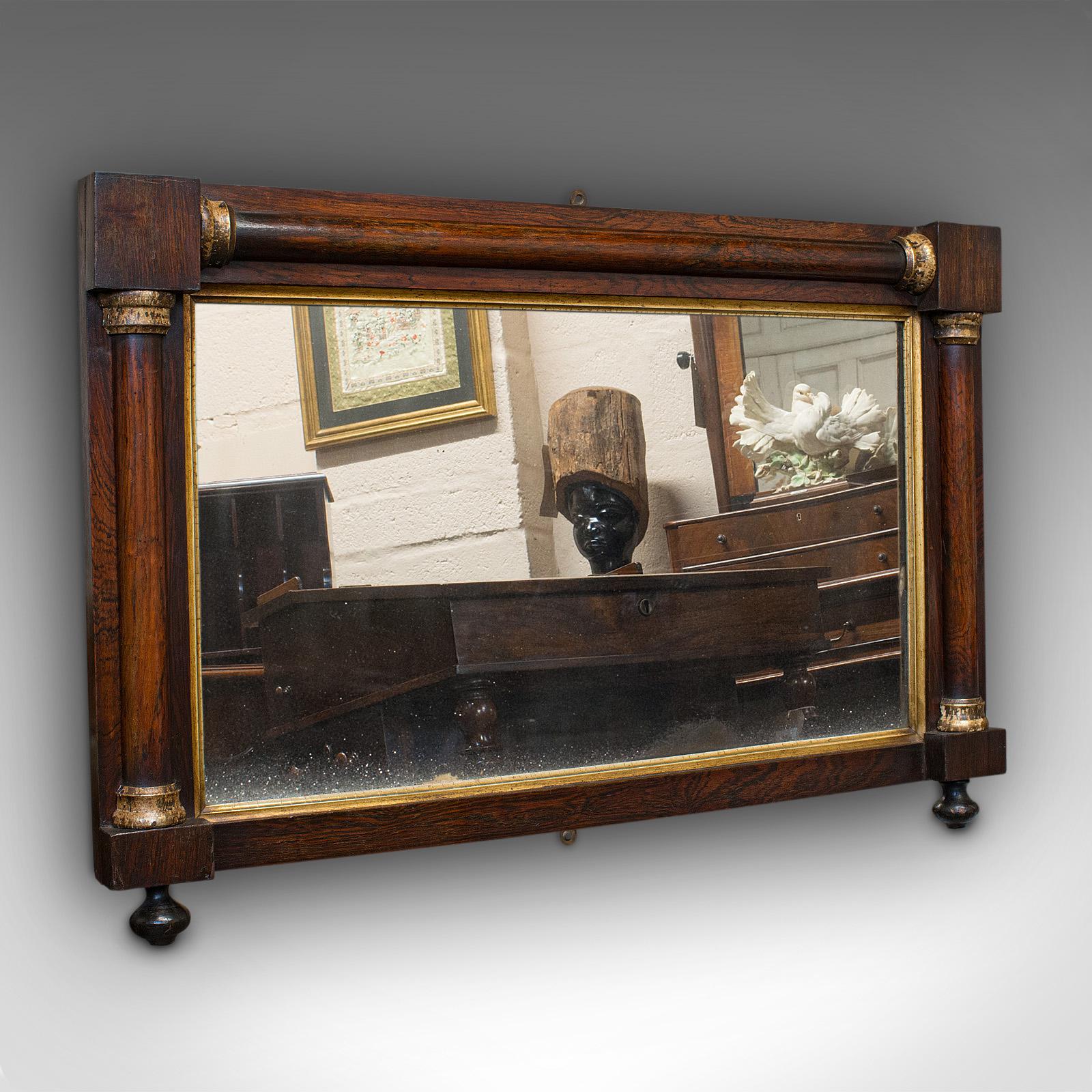 Antique Overmantel Mirror, English, Rosewood, Glass, Rectangular, Regency, 1820