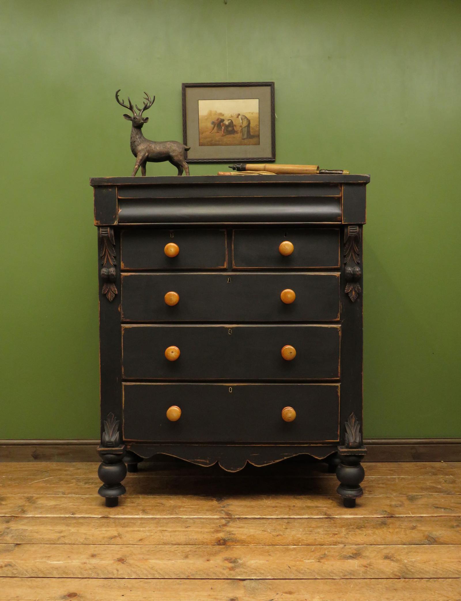 Antique Painted Black Chest of Drawers, Gothic Shabby Chic