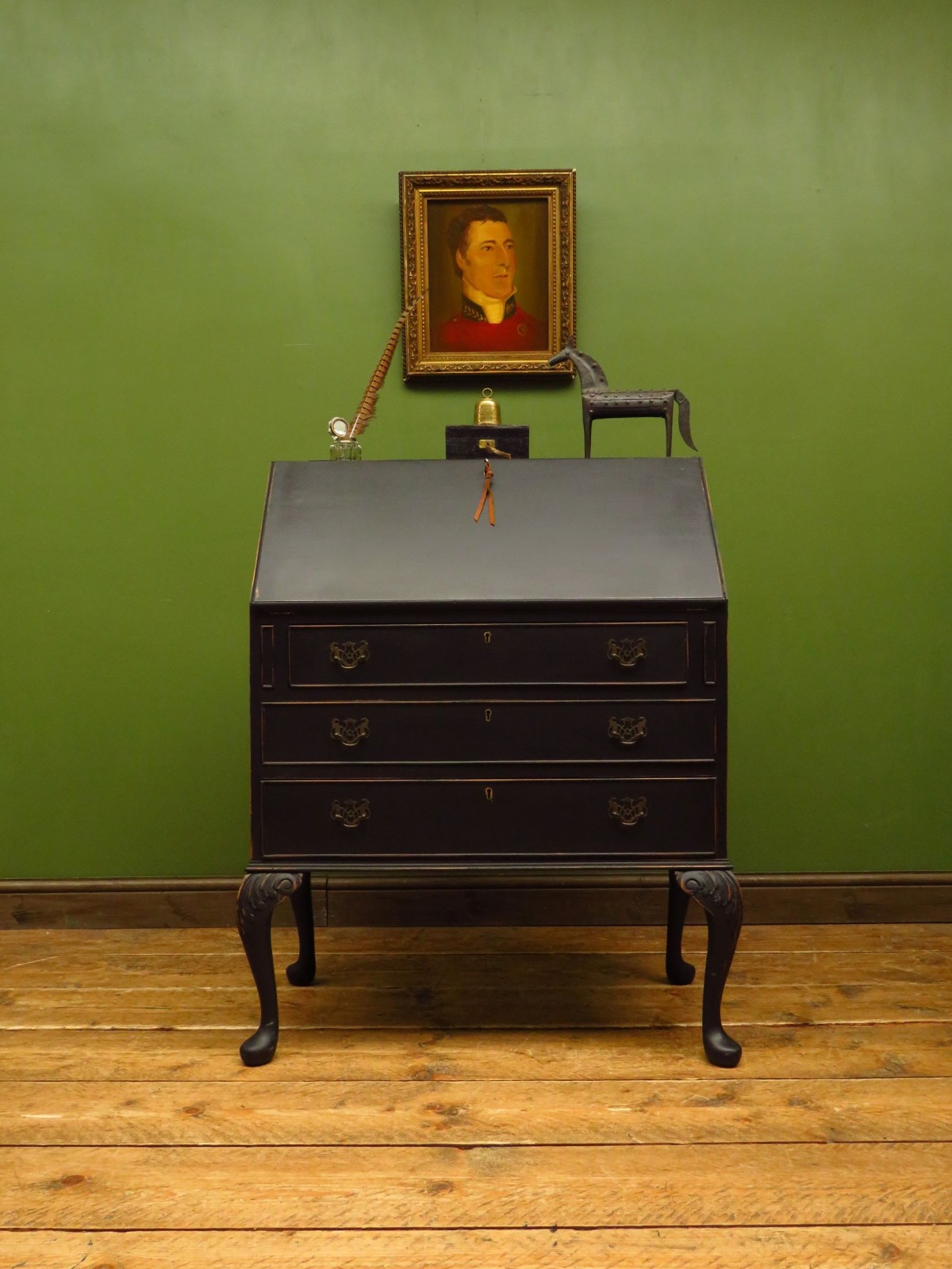 Antique Painted Black Writing Bureau Desk with Fall Front, Gothic Shabby Chic