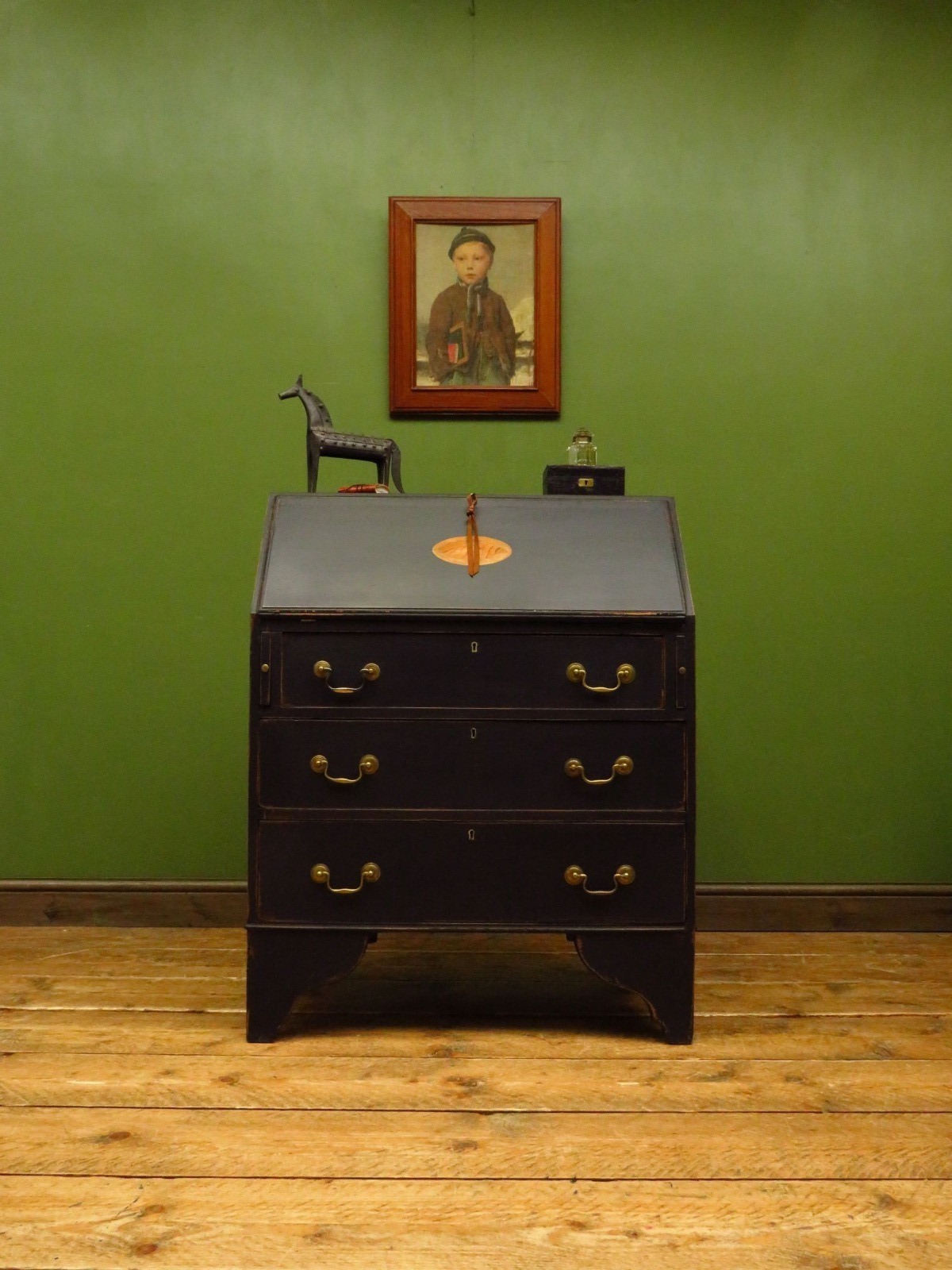Antique Painted Black Writing Bureau Desk with Fall Front, Lockable, Gothic