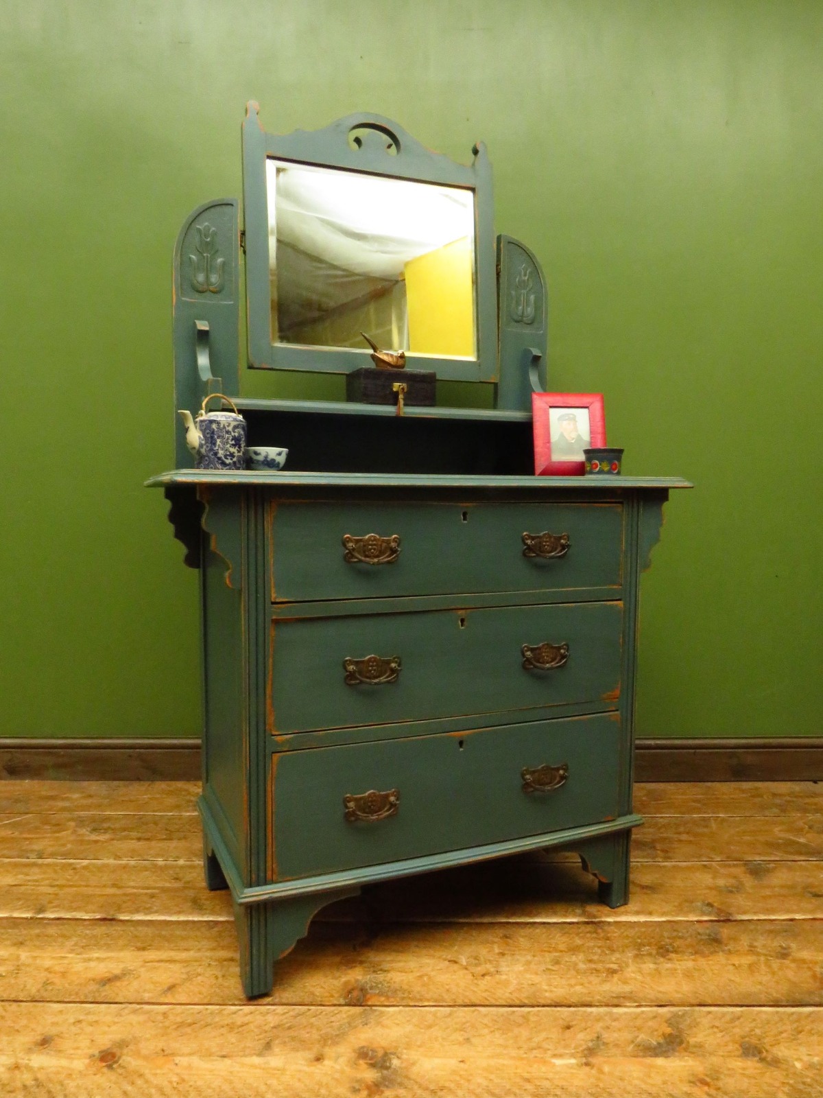 Antique Painted Blue Dressing Table Chest of Drawers, Bohemian Shabby Chic