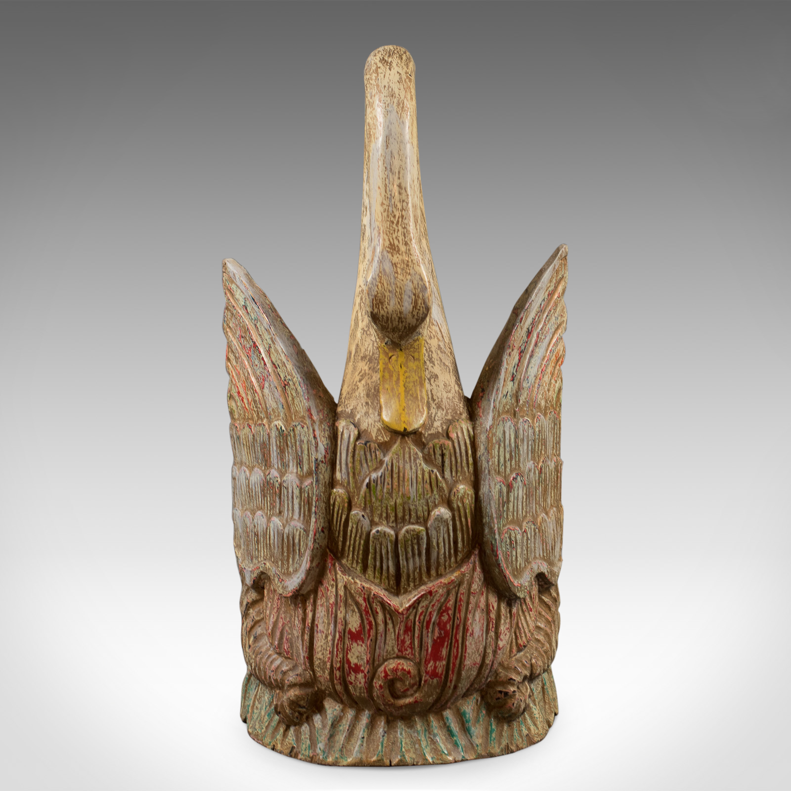 Antique Painted Carved Swan Ornament, Victorian Doorstop
