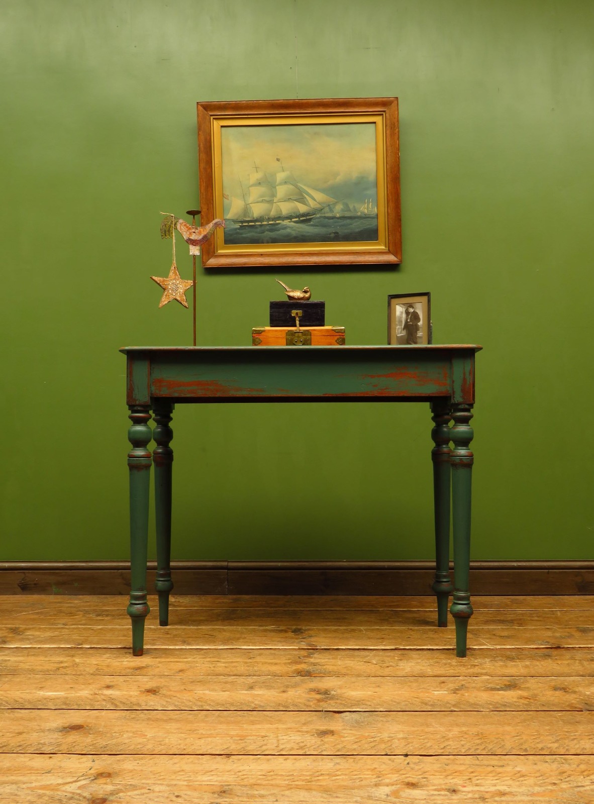 Antique Painted Green Console Table, Bohemian Shabby Chic