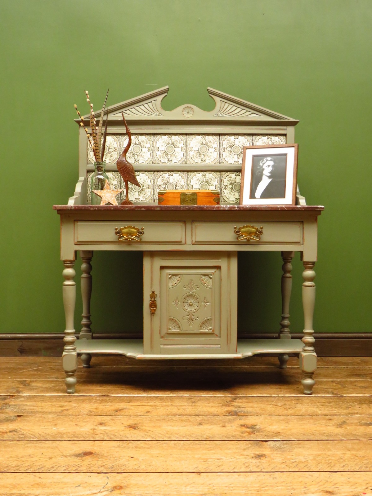 Antique Painted Marble Top Washstand Dressing Table, Grey Adaptable Sink Unit
