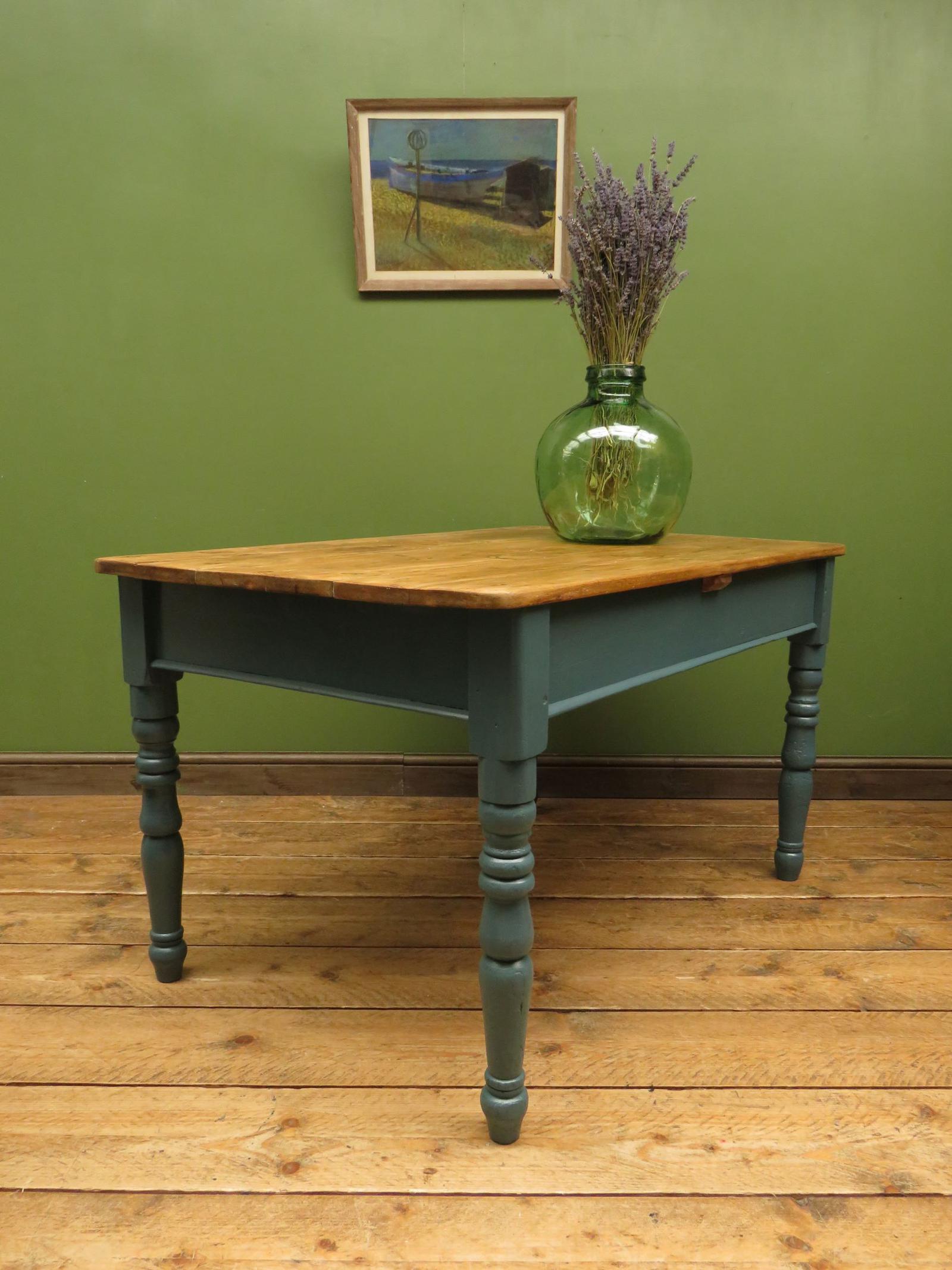 Antique Painted Pine Country Table, Kitchen or Dining Table to seat 4, blue base