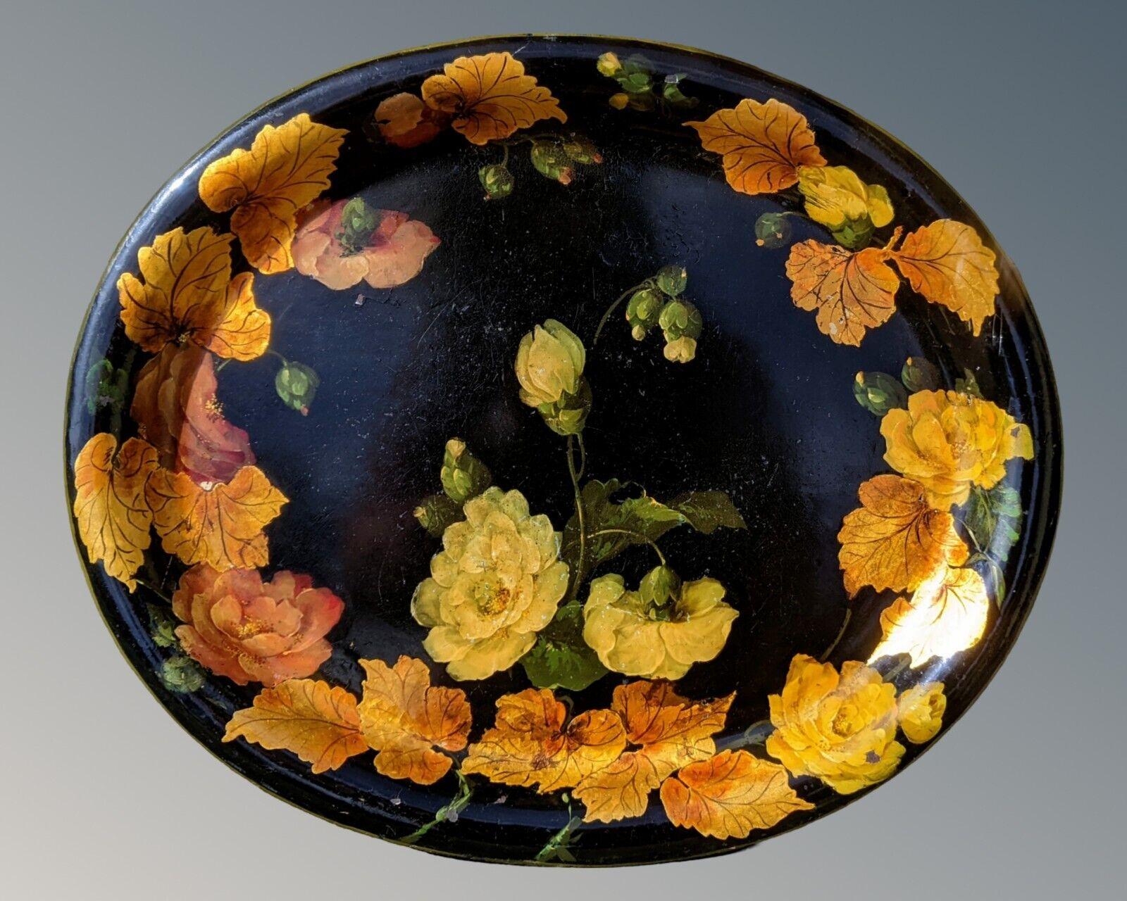 Antique Painted Toleware Tray Roses