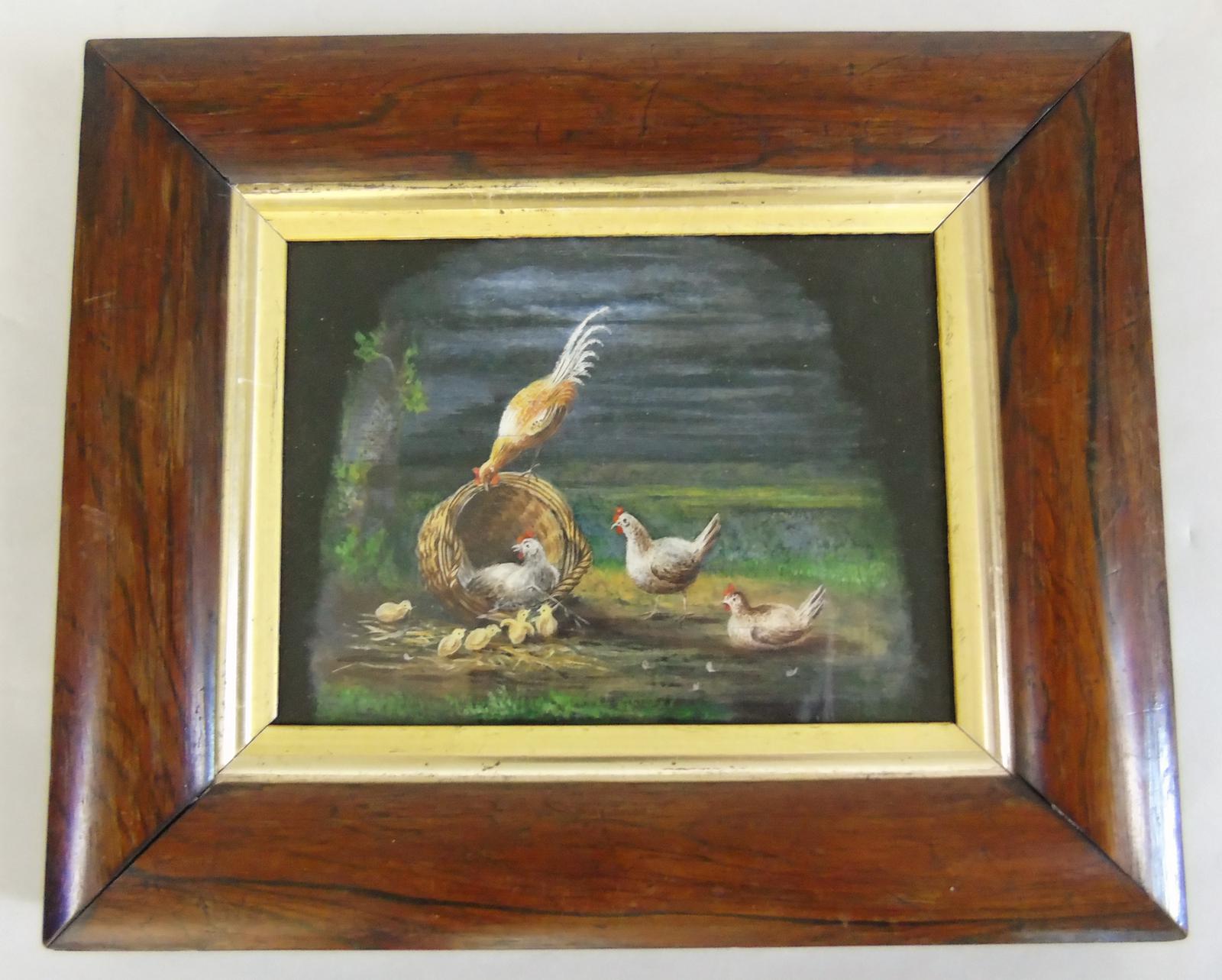 Antique Painting on Silk Chickens 19th Century (1 of 4)